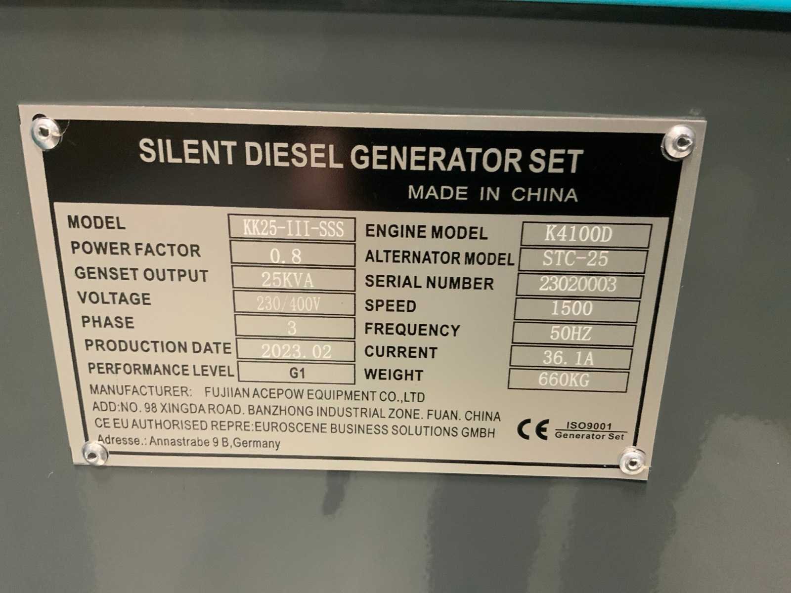 2023 kawakenki kk25-iii-sss silent diesel generator 25kva