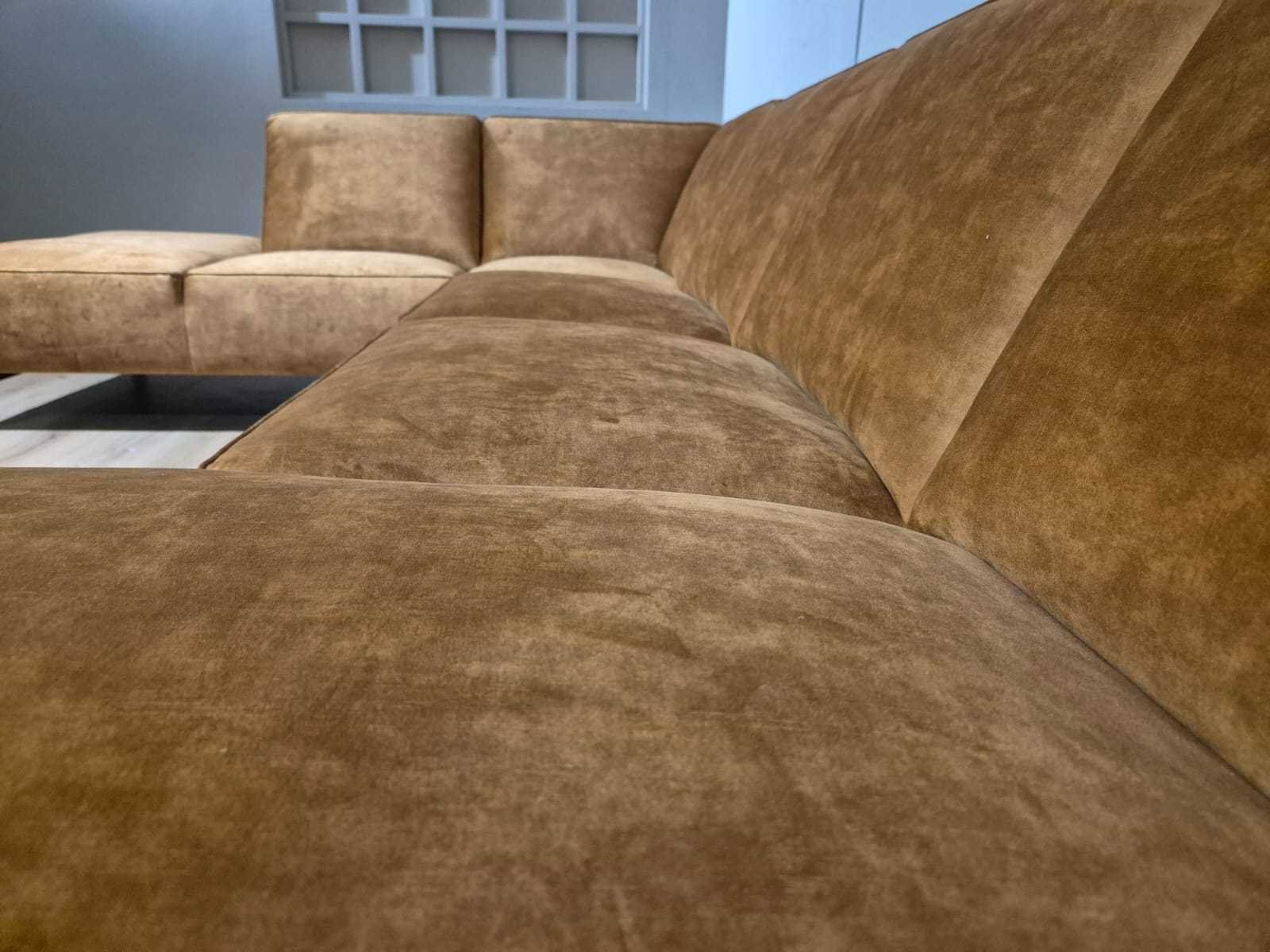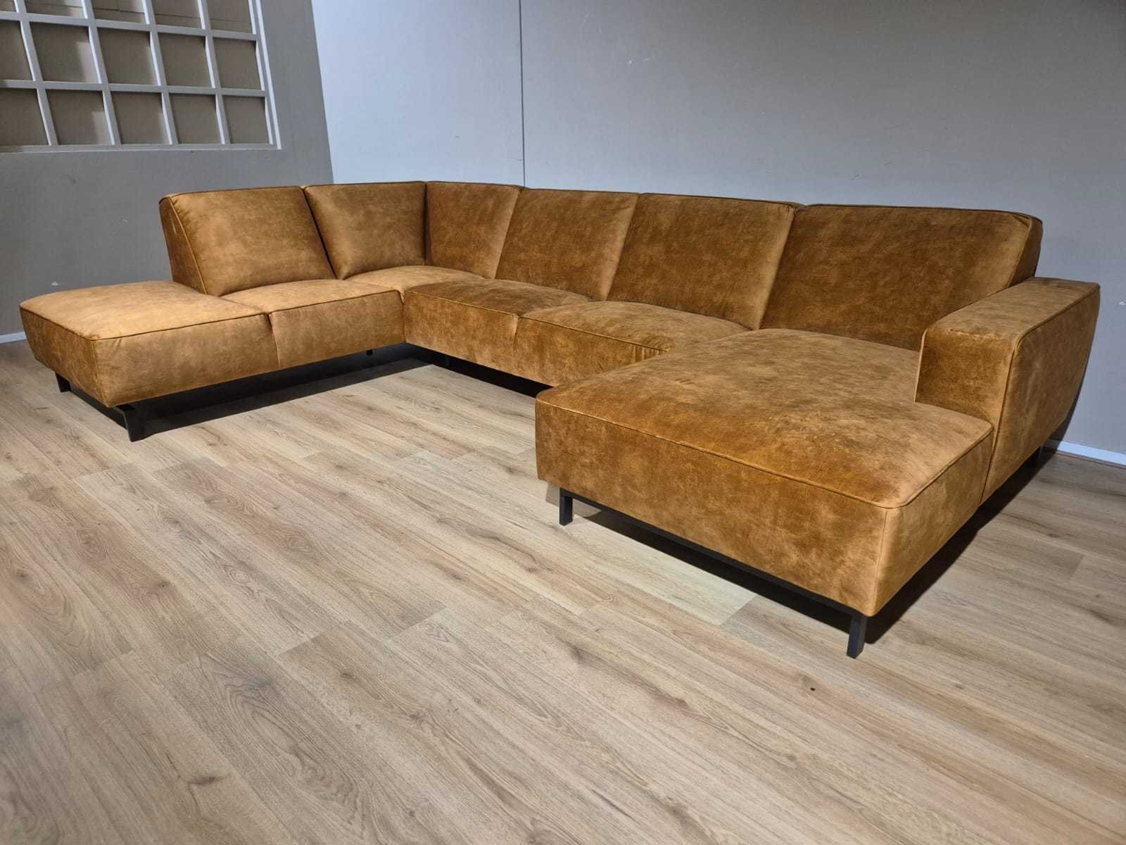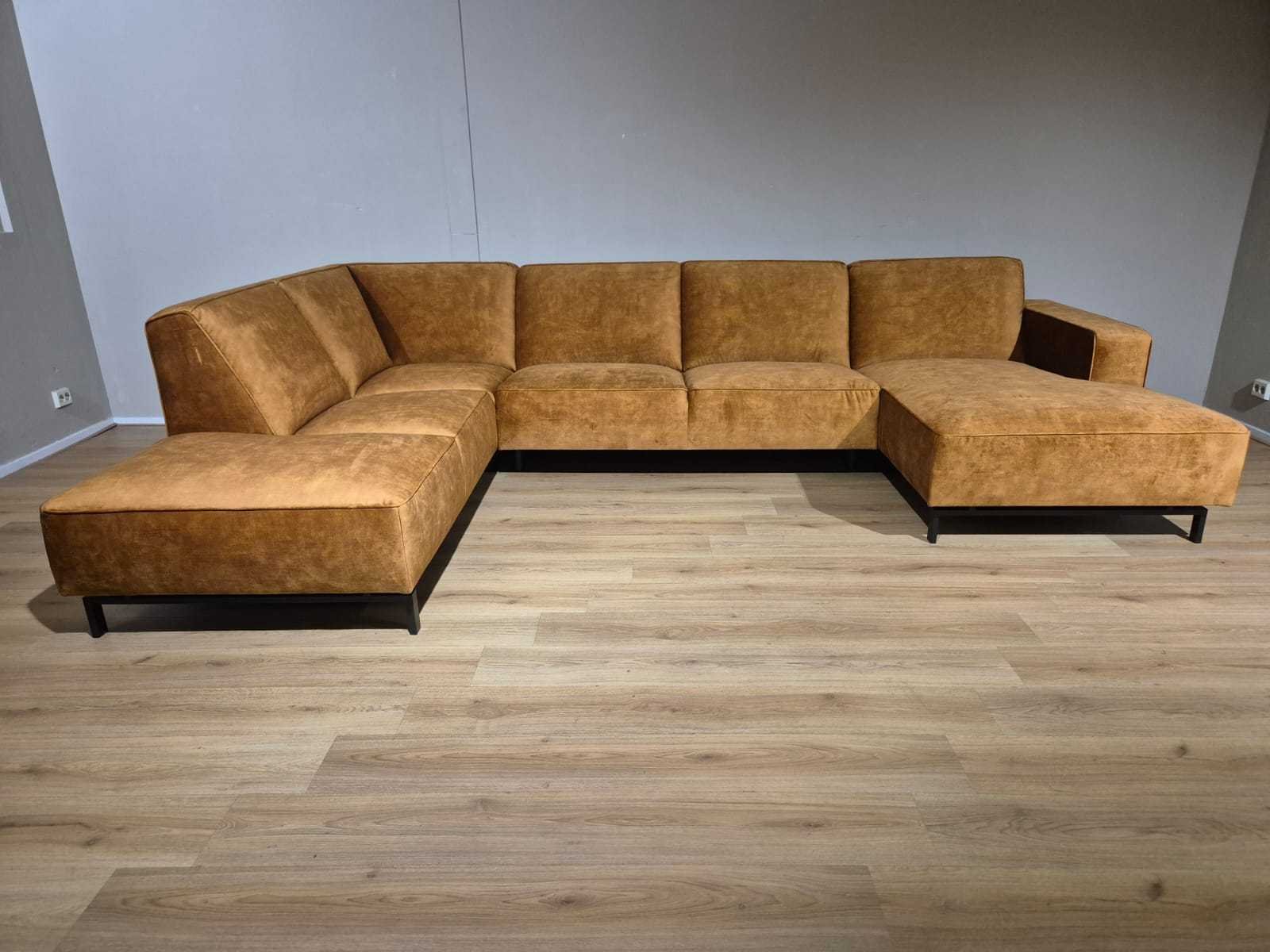 Nieuw uit de verpakking NP: €3699,- Merk: Virginia Model: Nieuw Product type: Hoekbank Kleur: Cognac Gewicht: 40kg Lengte: 350cm Breedte: 225cm Hoogte: 82cm Zithoogte: 44cm Diepte: 58cm Materiaal: Velours