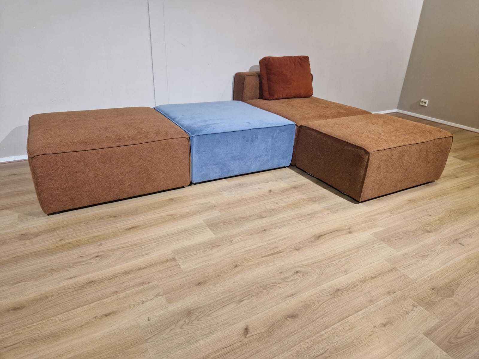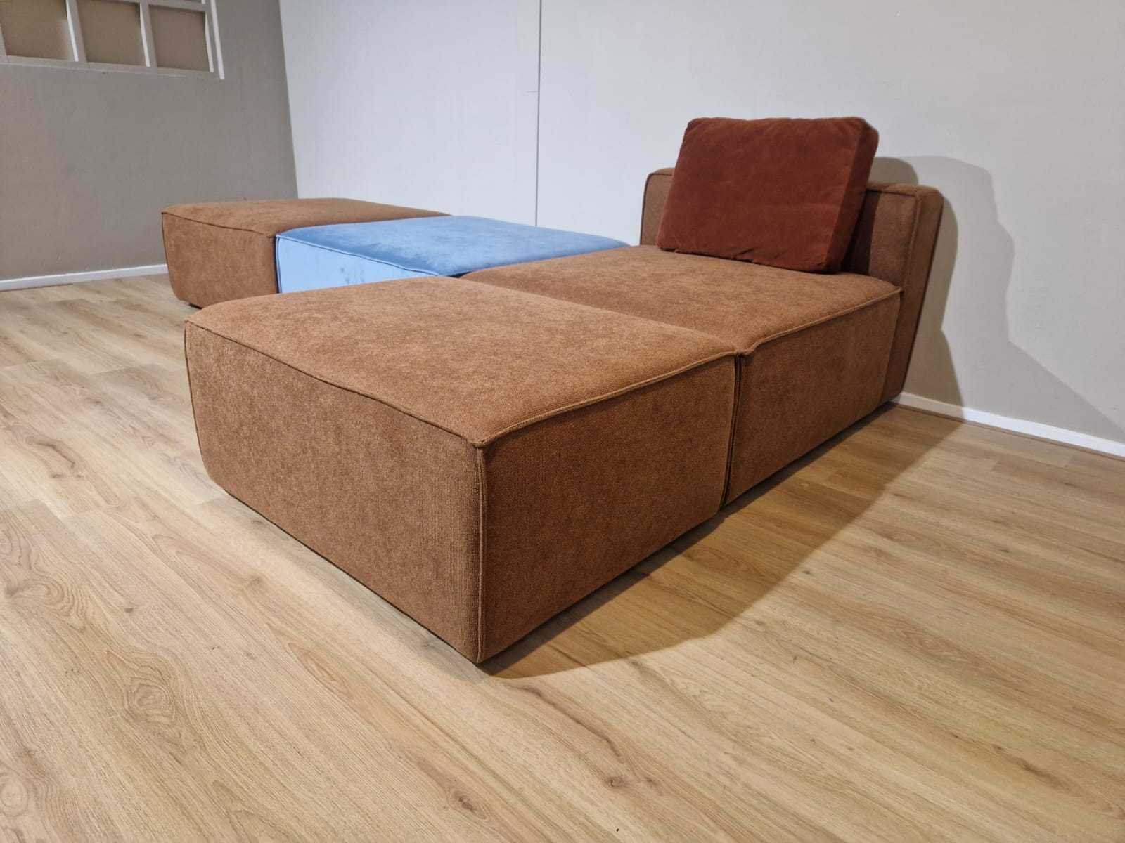 Nieuw uit verpakking NP: €3300,- Merk: Studio Mik Model: Loki Product type: Elementen Bank Kleur: Bruin - Blauw Gewicht: 30kg Lengte: 285cm Breedte: 190cm Hoogte: 69cm Zithoogte: 43cm Materiaal: Stof