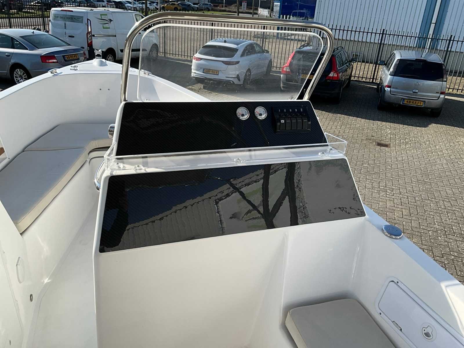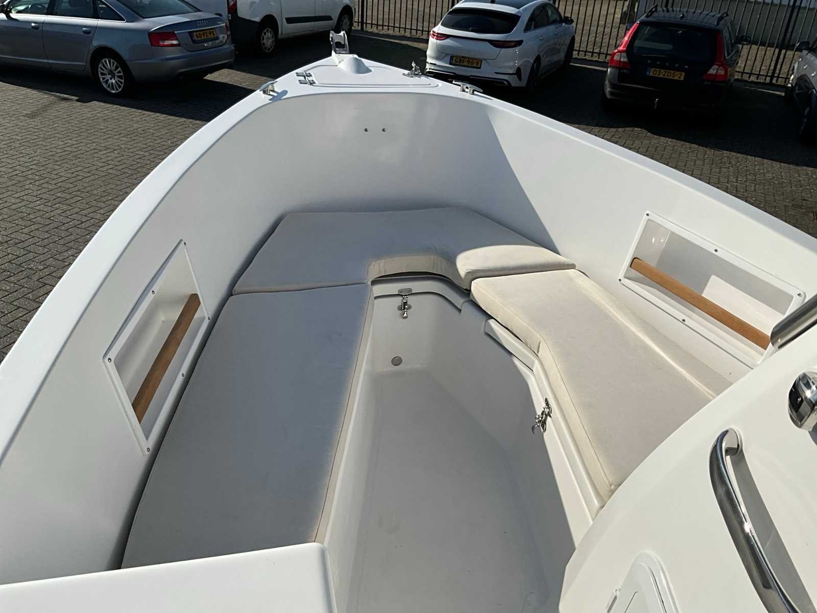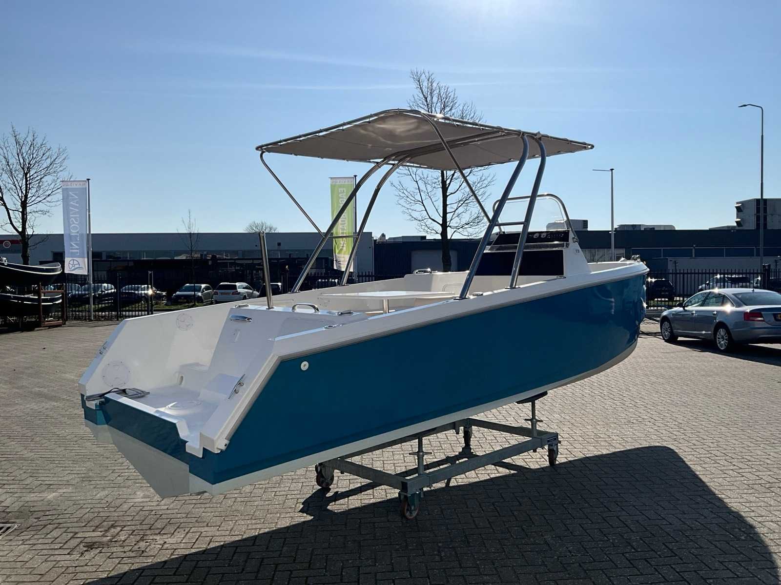 Voorzien van RVS Biminitop, kussenset, zwemtrap, buitendouche, vlaghouder, 50 liter schoonwater tank, wasbak, koelkast,waterski paal, kleur blauw Merk: Navaro Type: 21 Rompmateriaal: Polyester Bouwjaar: 2024 Serienummer: MDG-TMM00004B423/TM21 Inhoud brandstoftank: 100l Lengte over alles: 6.42m Navigatieverlichting: true Breedte formaat: 2.3m Eigen gewicht: 1200kg