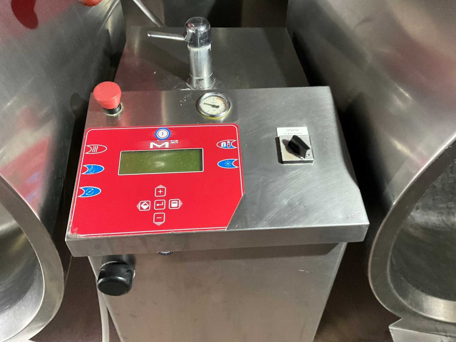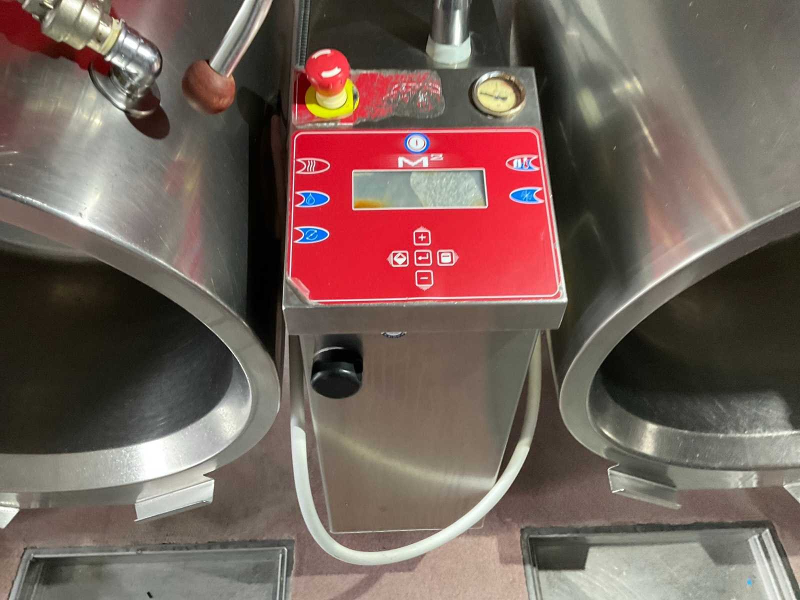 Industriële productielijn bestaande uit 4 gekoppelde Getinge ketels, uitgevoerd als gecombineerde kook-, snij-/meng- en terugkoelinstallatie; De installatie bestaat uit: 2x kook-/snijketels met geïntegreerd snij-/mengmechanisme, 2x kook-/terugkoelketels zonder snijfunctie; Kenmerken: Inhoud per ketel ca. 150 liter (indicatief, visueel afwijkende formaten aanwezig), Elektrische aansluiting: 400 V, 3N, Volledig uitgevoerd in roestvast staal, Elektrisch kantelbaar Geïntegreerde roer-/snijmechanismen bij 2 ketels, Digitale M2 besturing, Automatische kook- en koelprogramma’s, Elektronische temperatuurregeling, Glycol gekoeld systeem; Geschikt voor bereiding van soepen, sauzen, puree, vlees- en maaltijdcomponenten binnen industriële productie; Voorzien van noodstopvoorziening; Gebruikte staat met normale industriële gebruikssporen. Kavel dient volledig gedemonteerd te worden; Transport en afkoppeling voor rekening en risico koper; Merk: Getinge Model: MS150 Materiaal: RVS Totale afmeting Breedte: 1050mm Totale afmeting L: 4900mm Totale afmeting Hoogte: 1400mm Spanning: 400