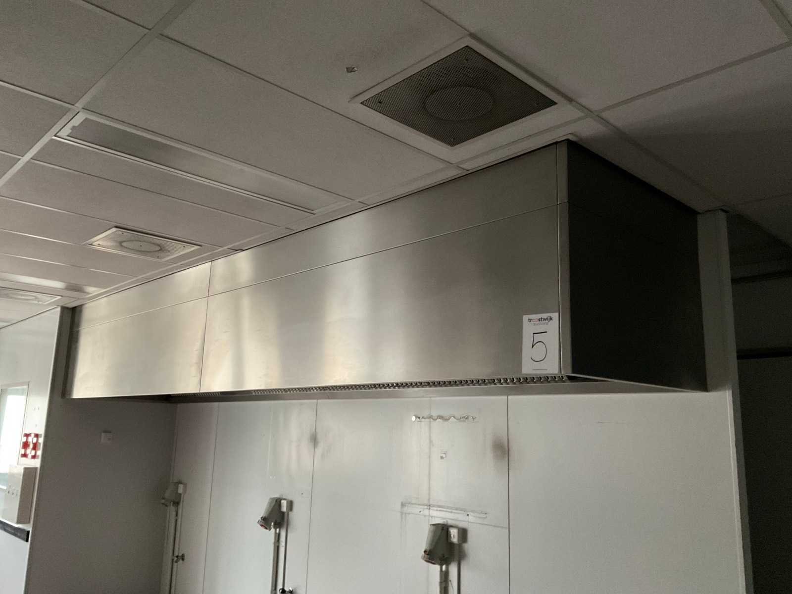 Voorzien van: 3 stuks TL-armaturen 36W (230V); Condensopvang; Uitneembare en reinigbare filters; Demontage en transport volledig voor rekening en risico van koper. Merk: Nu Air Model: DMD Bouwjaar: 2003 Materiaal: RVS AISI 304 Totale afmeting Breedte: 3200mm Totale afmeting L: 1100mm Totale afmeting Hoogte: 600mm
