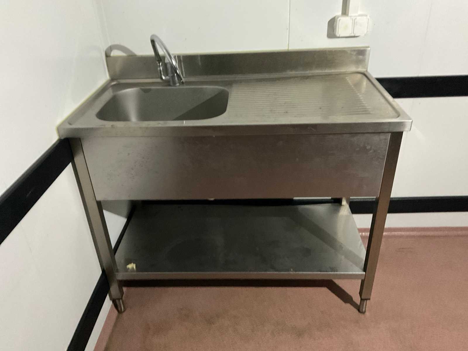 Werkhoogte: 960mm, Wasbakformaat: 500x400x250mm. Met eenhendel mengkraan; Demontage en transport volledig voor rekening en risico van koper; Totale afmeting L: 1200mm Totale afmeting Breedte: 600mm Totale afmeting Hoogte: 1060mm
