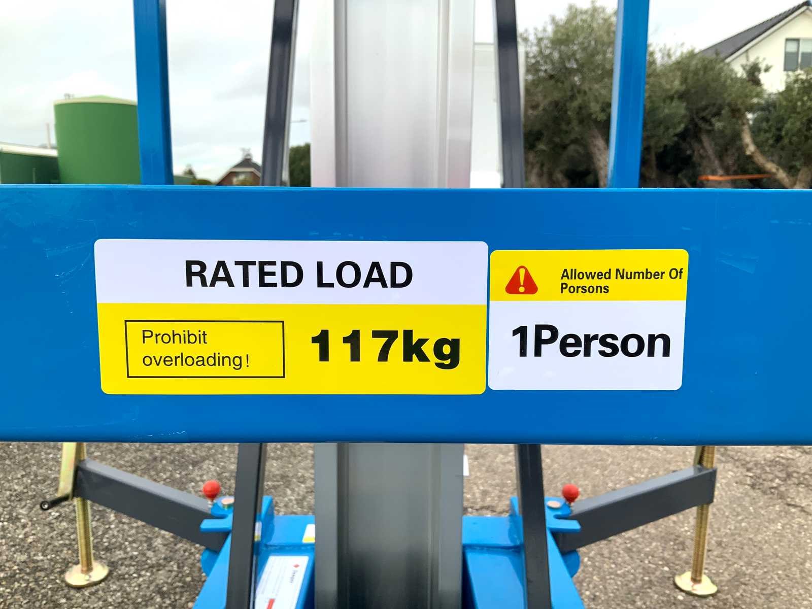 Masthoogwerker met afstandsbediening is ongebruikt. Bouwjaar: 2025 Elektrisch: true Masthoogwerker: true Werkhoogte: 8000mm Plateau afm. l: 600mm Plateau afm. b: 600mm Platform capaciteit: 117kg Eigen gewicht: 250kg Totale afmeting L: 1170mm Totale afmeting Breedte: 750mm Totale afmeting Hoogte: 1850mm