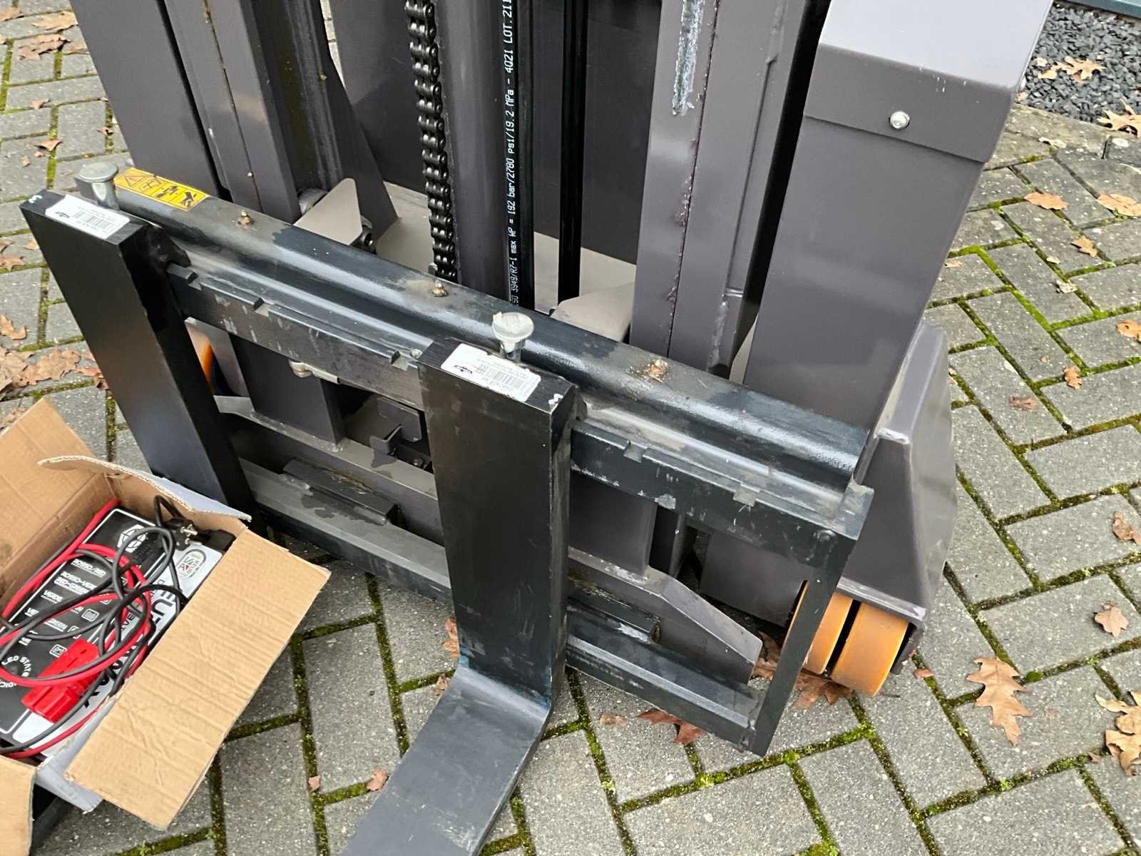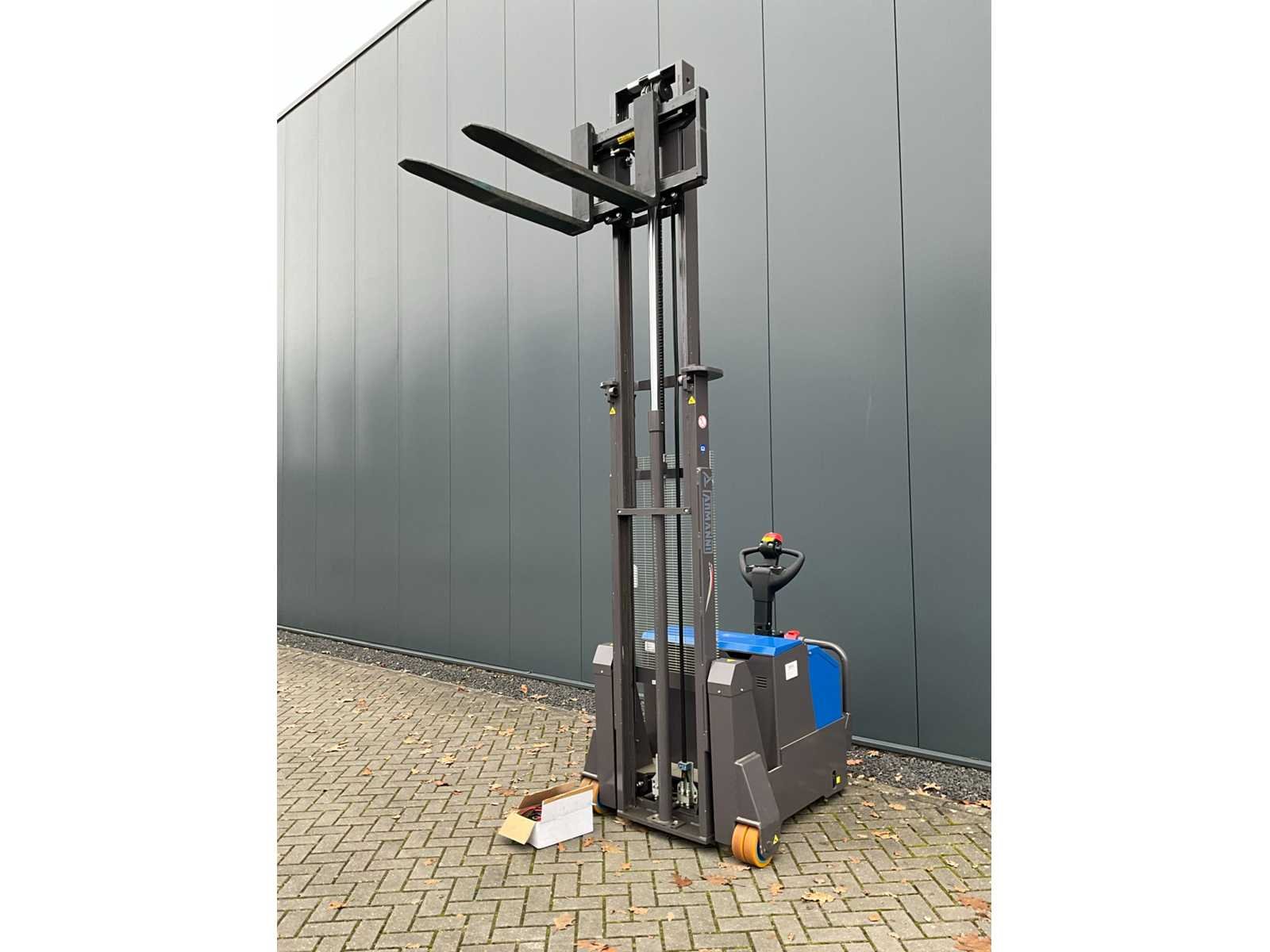 Voorzien van dublex mast, side shift, 3 hydraulische functies (heffen/neigen/side-shift) Merk: Armanni Type: Delta cp ac-evo Bouwjaar: 2022 Serienummer: 75063-2022 Hefvermogen: 500kg Hefhoogte: 2970mm Lepellengte: 1000mm Minimale doorrijhoogte: 2250mm Totale afmeting L: 2600mm Totale afmeting Breedte: 1150mm Totale afmeting Hoogte: 2210mm Meerij stapelaar: true Accu lader: true