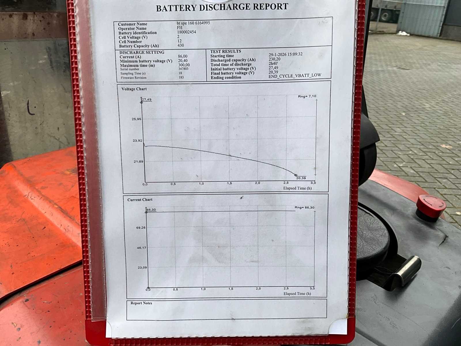 Acculader wordt meegeleverd, voorzien van batterij test rapport Merk: BT Type: SPE160 Bouwjaar: 2011 Serienummer: 6164995 Hefvermogen: 1600kg Hefhoogte: 2400mm Lepellengte: 1000mm Afgelezen urenstand: 5774 Minimale doorrijhoogte: 2400mm Totale afmeting L: 2200mm Totale afmeting Breedte: 800mm Meerij stapelaar: true Accu lader: true
