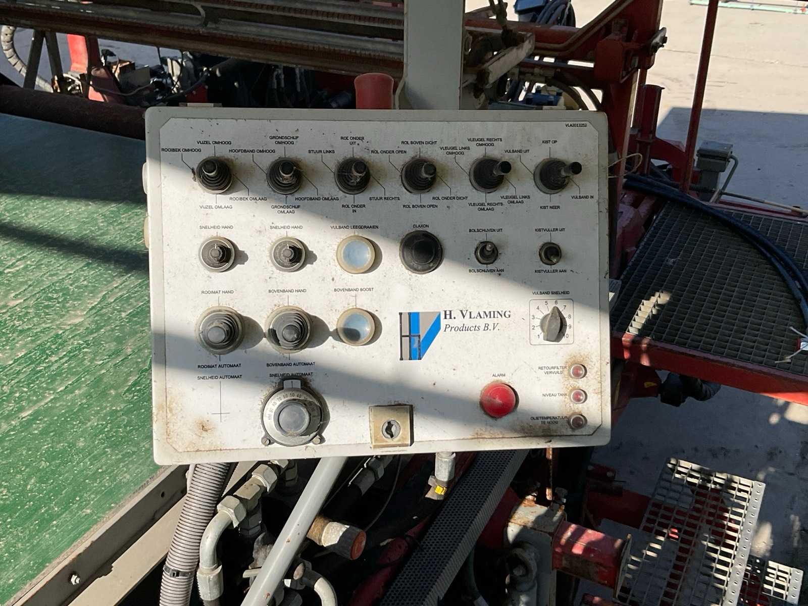 Tulpen dubbelnetrooier; dubbele rijregeling; schuifas; poclain wielaandrijving; automatische vlakstelling; hydraulische vijzel; kistrek; grondzeef; v.v. (3x) transportband; bandenmaat 800/45-26.5 Merk: Vlaming Bouwjaar: 2009 Kenteken: LJZ-63-H Werkbreedte: 1800mm Spoorbreedte: 2250mm Totale afmeting L: 9000mm Totale afmeting Breedte: 3000mm Totale afmeting Hoogte: 3500mm