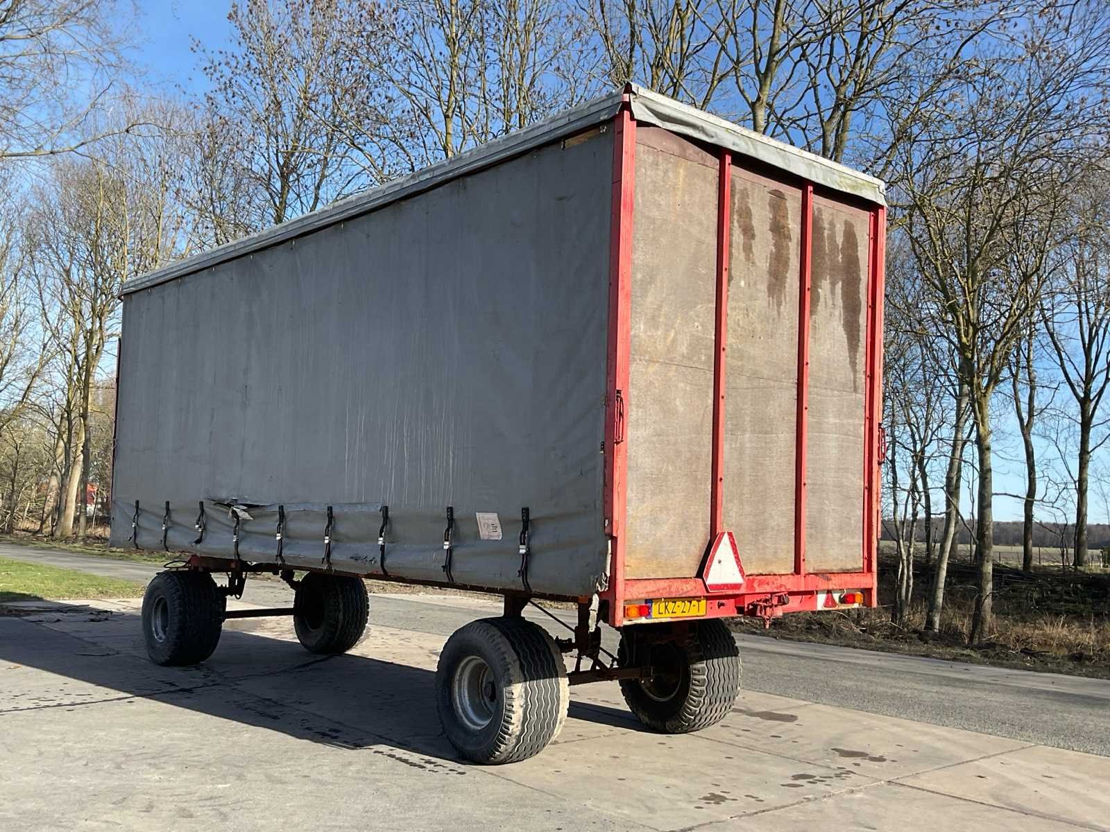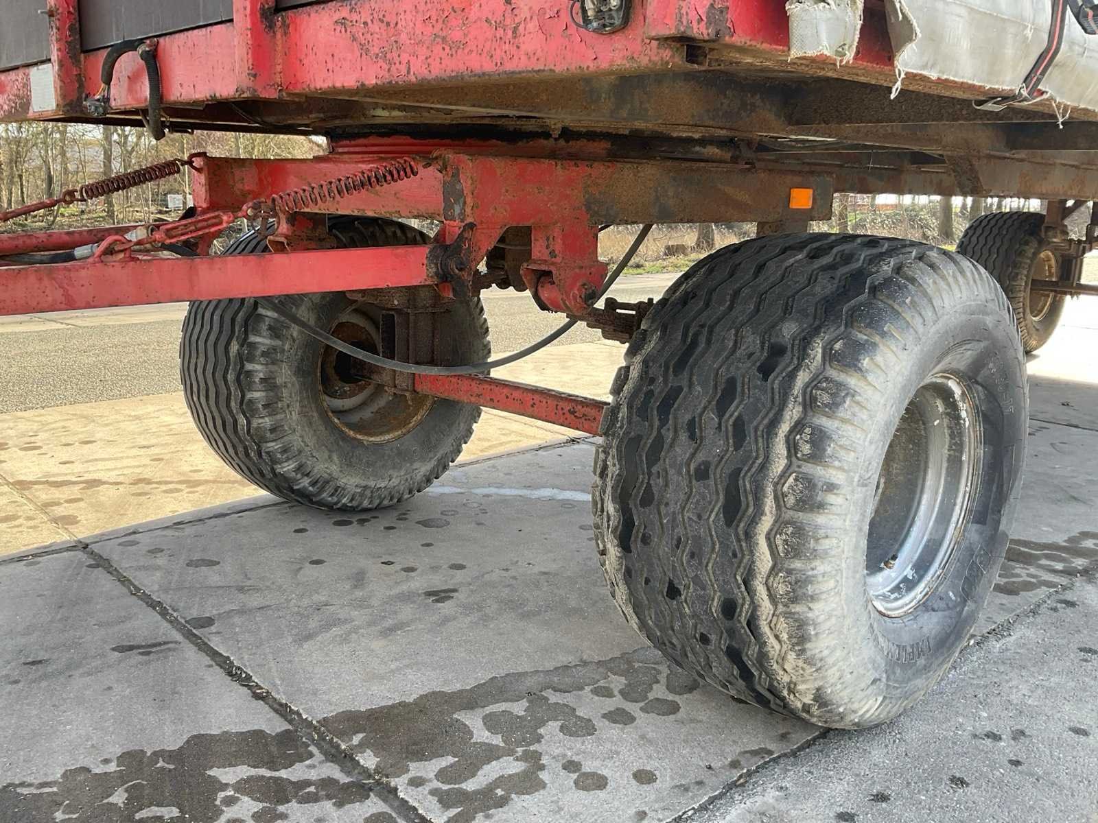 Laadbak afm. ca. 7700x2200x2700 mm; bandenmaat 500/50-17; hydraulisch Merk: Mulder Type: DSHW Bouwjaar: 1995 Serienummer: 1995MUL28 Kenteken: LKZ-27-T Laadvermogen: 10000kg