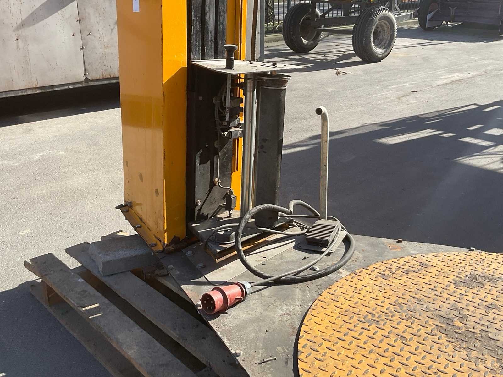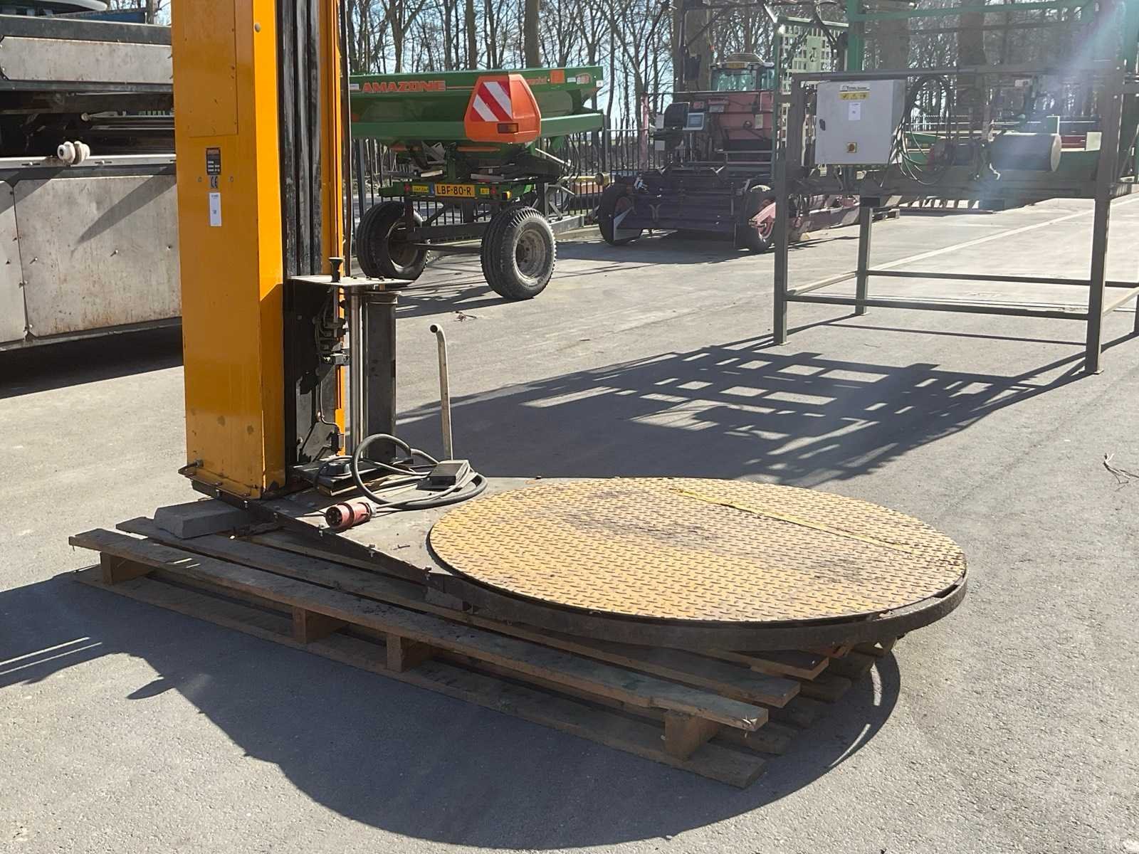 Merk: Strapex Type: 606 Plateau Ø: 1500mm Foliebreedte: 500mm Aansluiting: 400V Totale afmeting L: 1500mm Totale afmeting Breedte: 2600mm Totale afmeting Hoogte: 3000mm