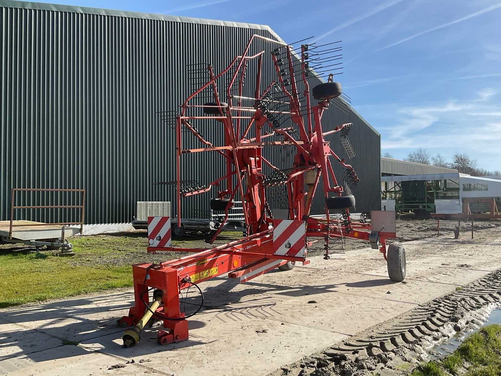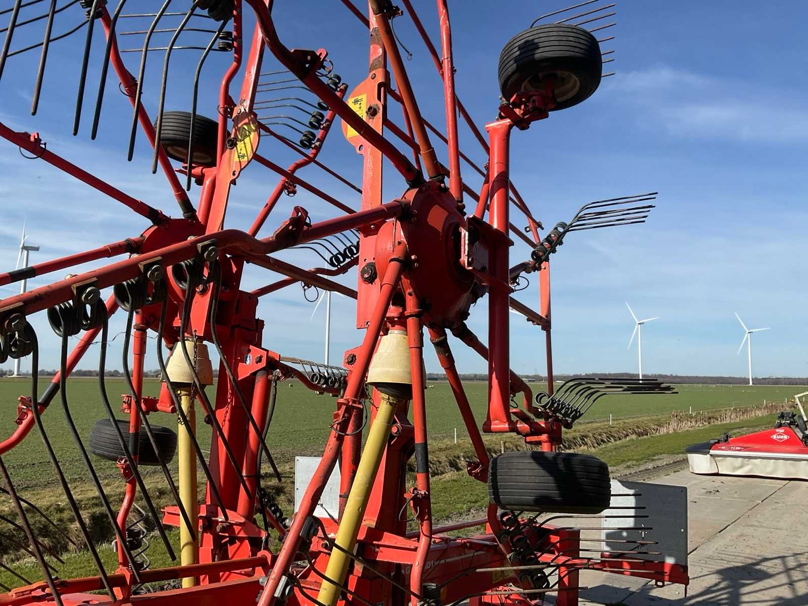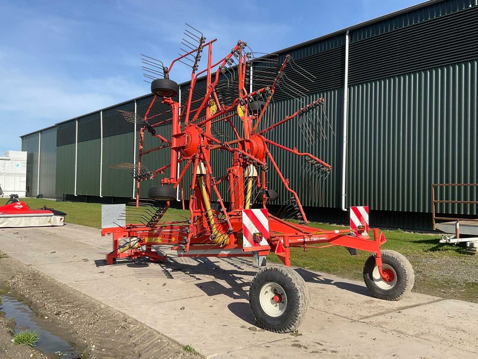Zwadbreedte: 1400 - 1800 mm; 10 armen per rotor; 4 tanden per arm; bandenmaat 10.0/80-12; aftakas aangedreven; v.v. driepunt aansluiting Merk: Kuhn Type: GA 7301 Bouwjaar: 2000 Eigen gewicht: 1550kg Werkbreedte: 7300mm