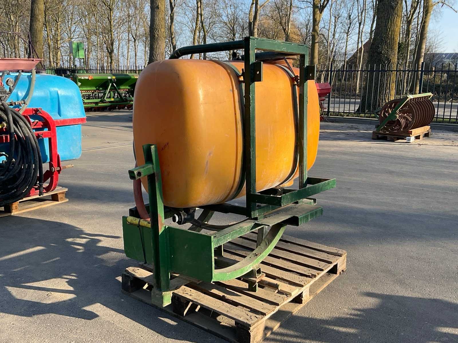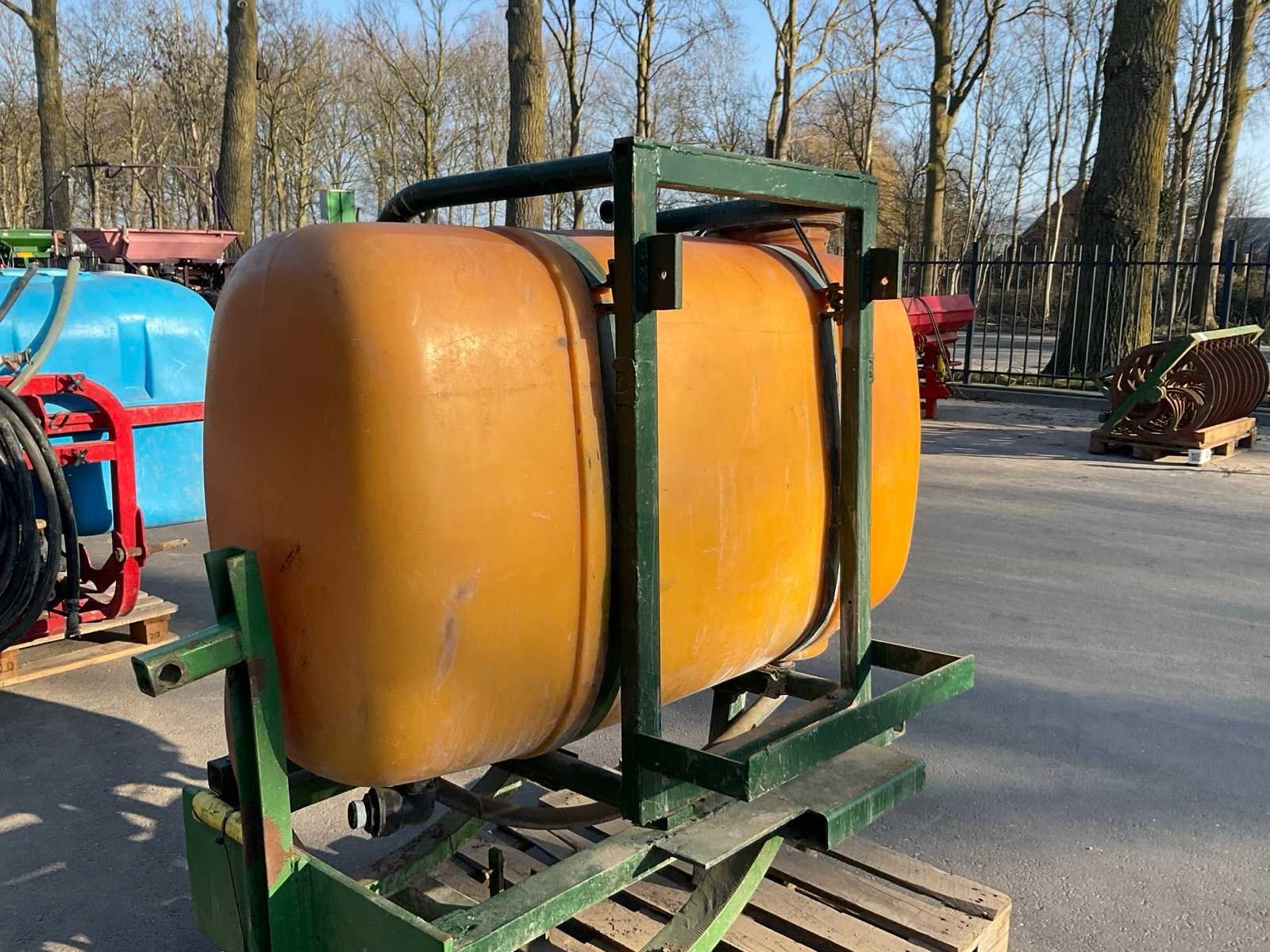 Inhoud 500 liter; tank afm. ca. 1350x500 mm; op pallet