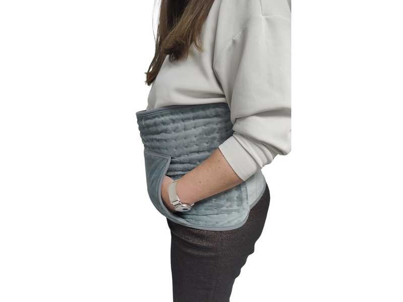 VH Kangoeroe elektrische warmte deken, buikgordel size large, Kleur blauwgrijs, Fleece stof, vermogen 90 watt, afmeting 30 x 155 cm, met klittenband, LCD controller met 6 standen ten timer, snoer 300 cm, Merk: VH Kangoeroe Type: Warmtedeken Buikgordel Large