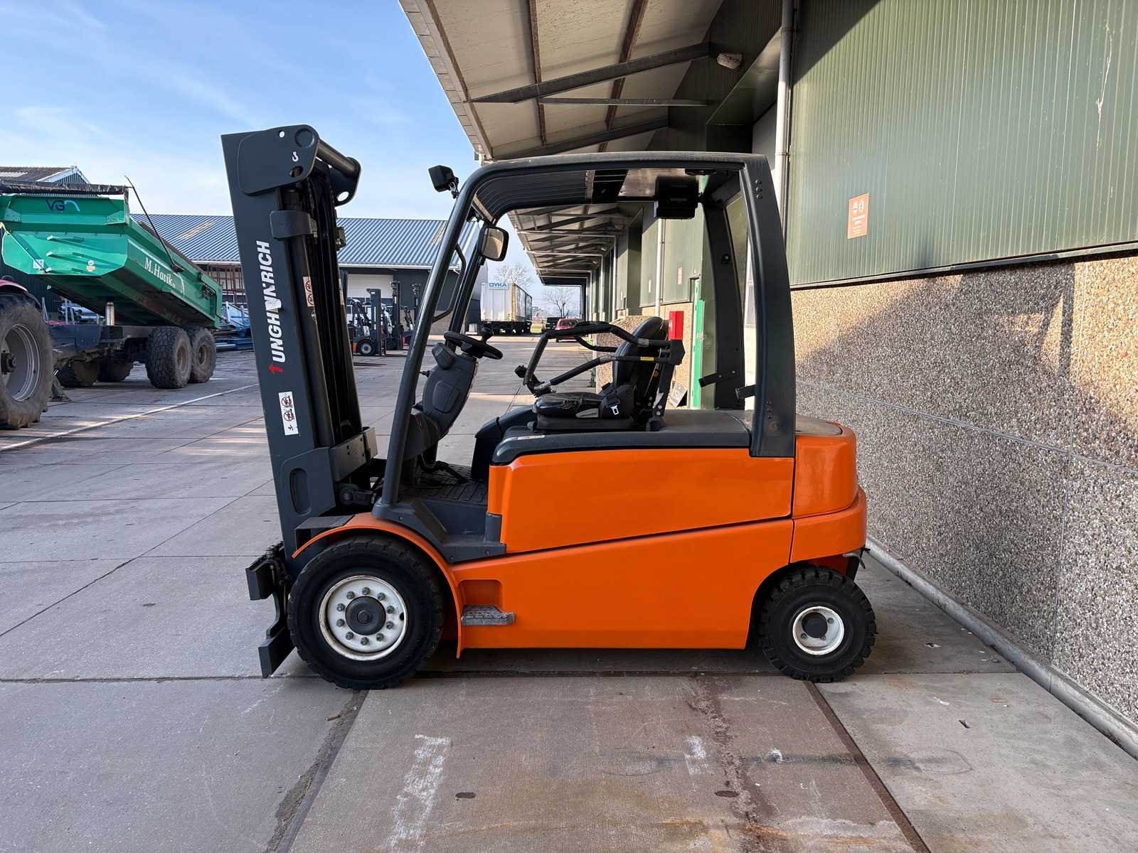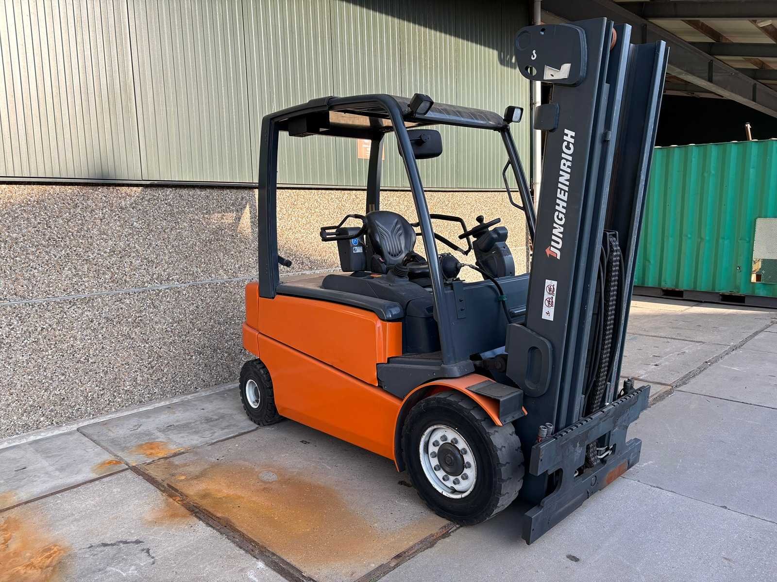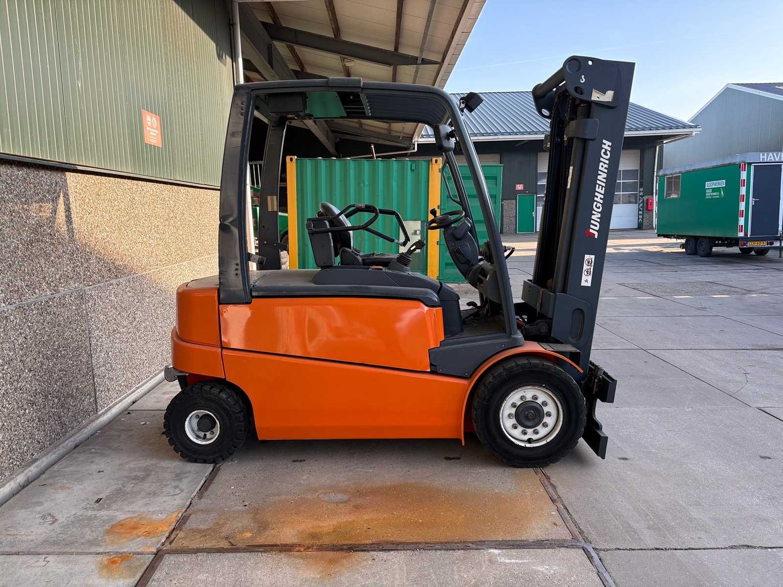 Grammer stoel; Blaupunkt radio; joystickbediening; accu is leeg/mogelijk defect; werking onbekend; zonder oplader; Merk: Jungheinrich Type: EFG 540 Serienummer: FN341130 Brandstof: Elektrisch Aantal wielen: 4 Triple mast: true Hefvermogen: 4000kg Hefhoogte: 4925mm Minimale doorrijhoogte: 2140mm Totale afmeting L: 2800mm Totale afmeting Breedte: 1350mm Totale afmeting Hoogte: 2140mm