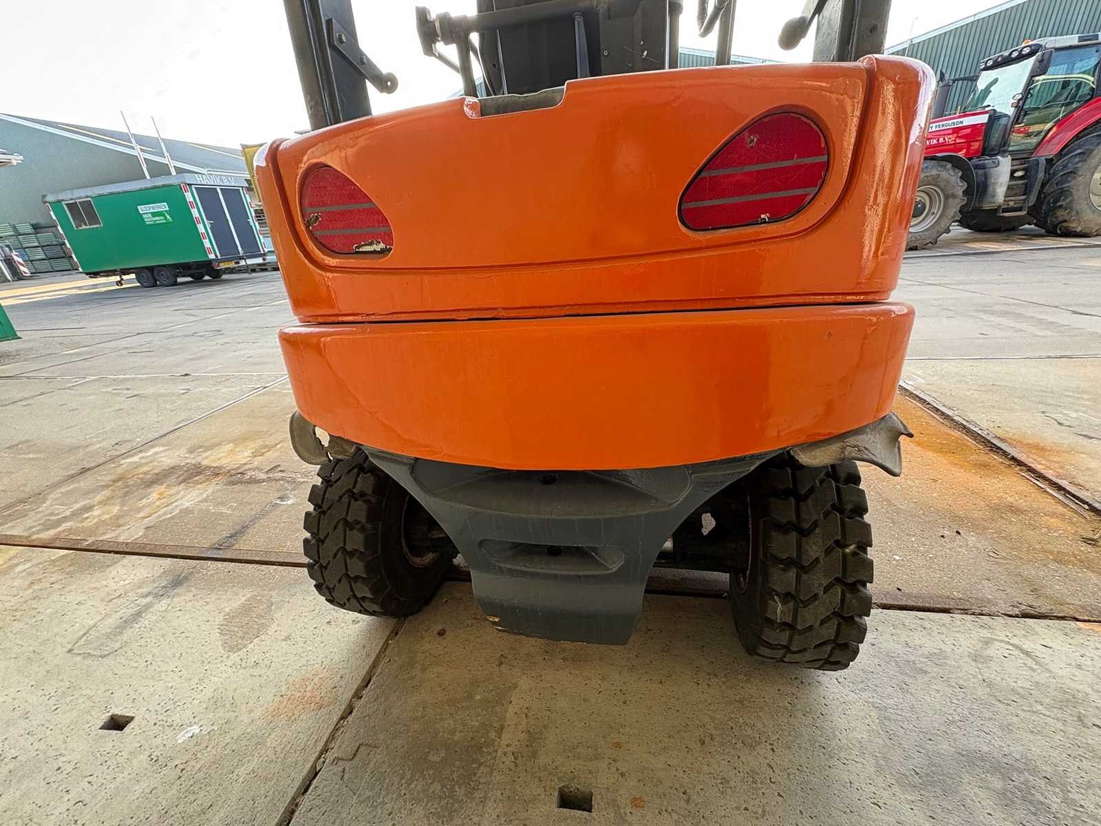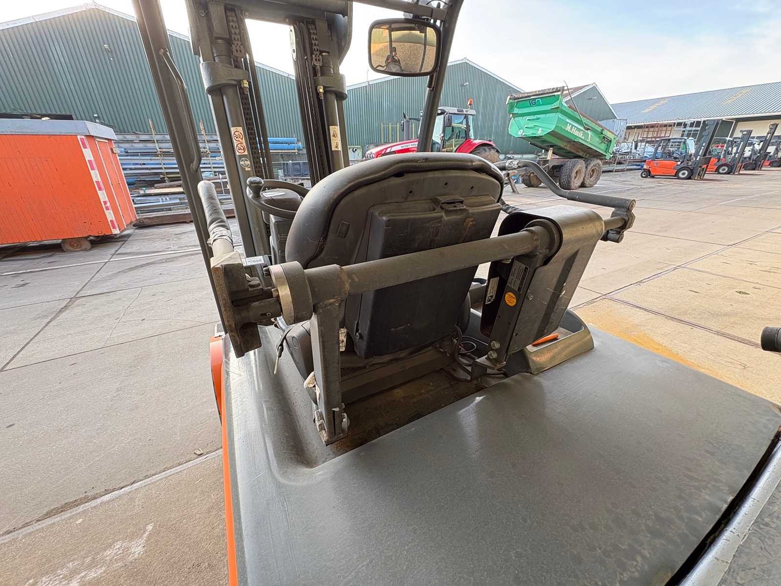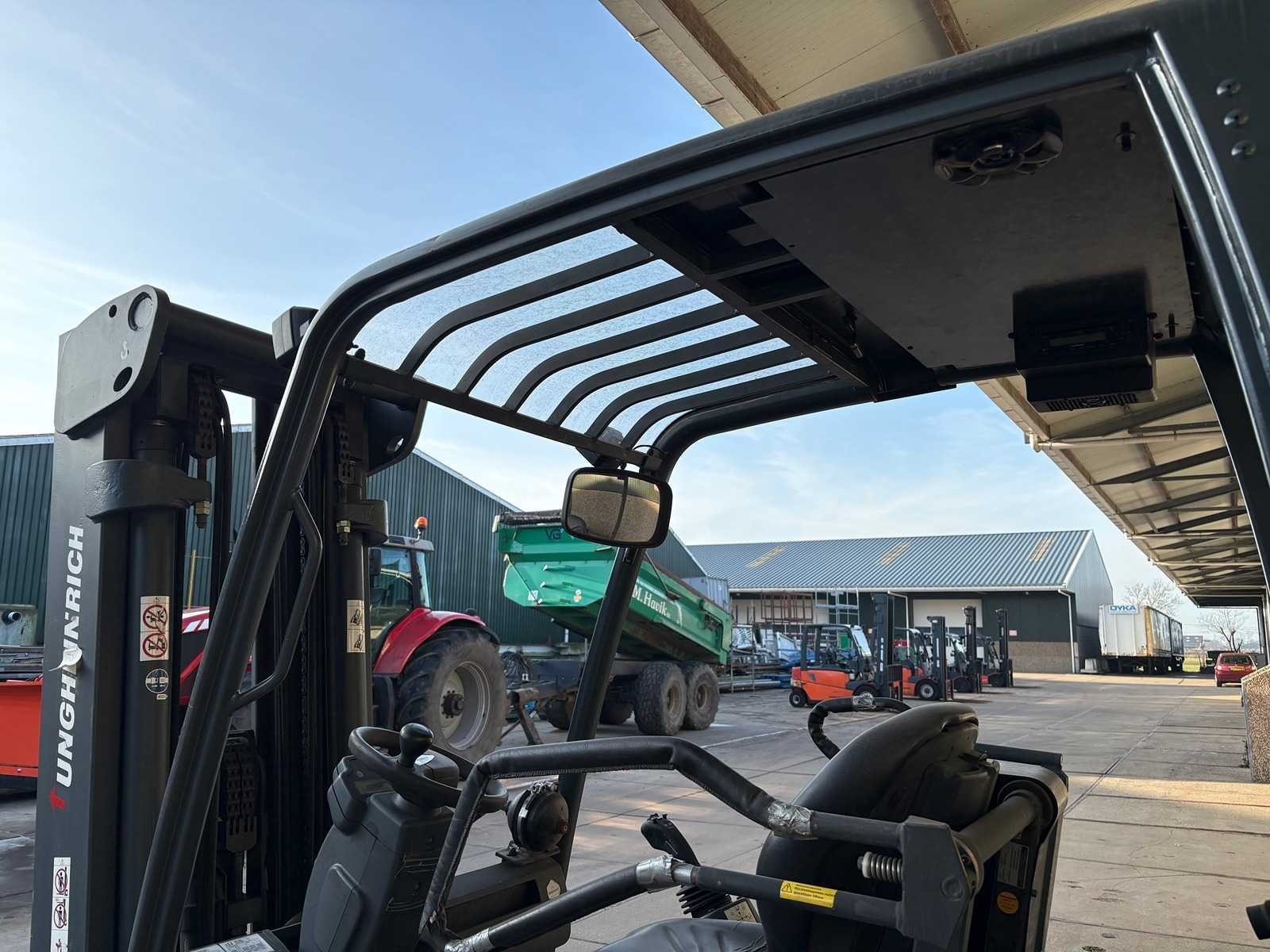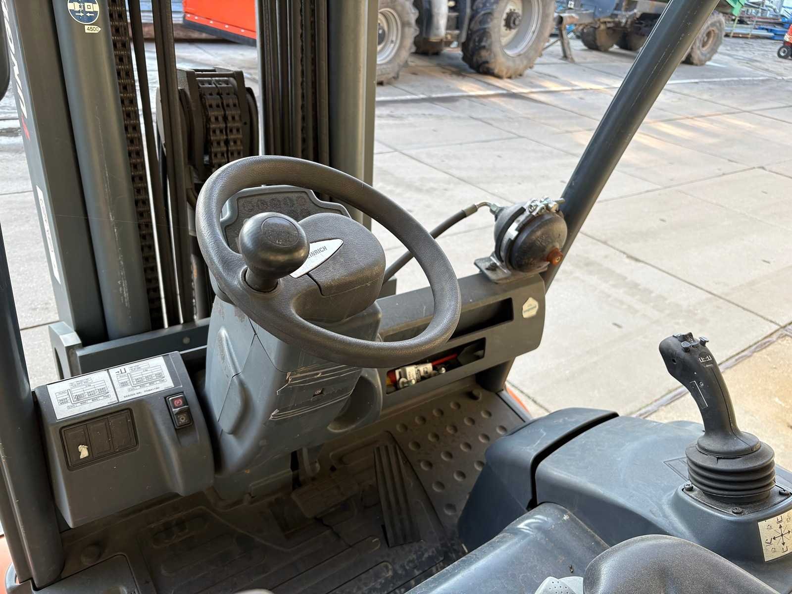 Grammer stoel; Blaupunkt radio; joystickbediening; accu is leeg/mogelijk defect; werking onbekend; zonder oplader; Merk: Jungheinrich Type: EFG 540 Serienummer: FN341130 Brandstof: Elektrisch Aantal wielen: 4 Triple mast: true Hefvermogen: 4000kg Hefhoogte: 4925mm Minimale doorrijhoogte: 2140mm Totale afmeting L: 2800mm Totale afmeting Breedte: 1350mm Totale afmeting Hoogte: 2140mm