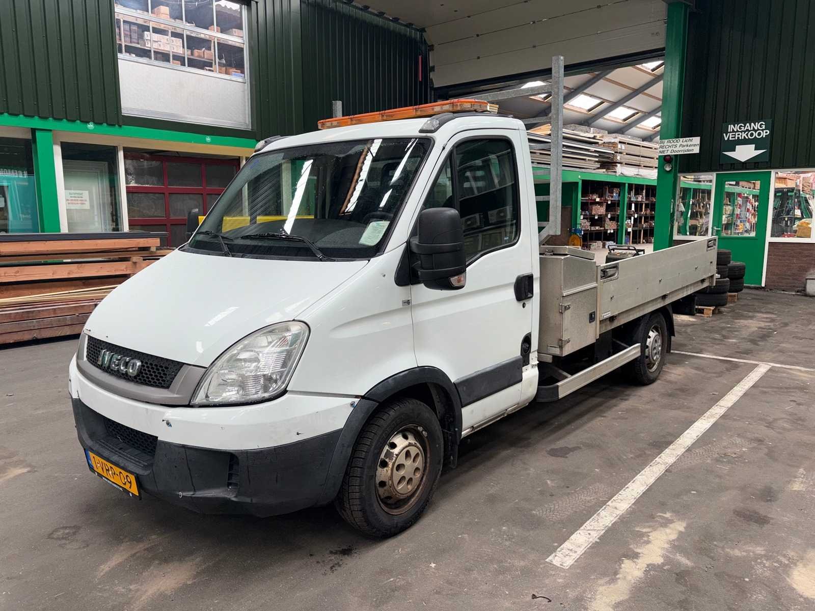 V.v. autolaadkraan (HIA) met bedieningsunit en noodstop; opbergkist/gereedschapskist achter de cabine; imperiaal/rek achter cabine; trekhaak; kipperopbouw met aluminium zijborden; massa rijklaar 2660kg; massa ledig voertuig 2560kg; Kenteken: 1-VRP-09 Merk: IVECO Type: 29L12 EURO 4 LD Bouwjaar: 2011 Chassisnummer: ZCFC298200D452602 Afgelezen kilometerstand: 167780km Brandstof: Diesel APK vervaldatum: 13-10-2026 Aantal zitplaatsen: 3