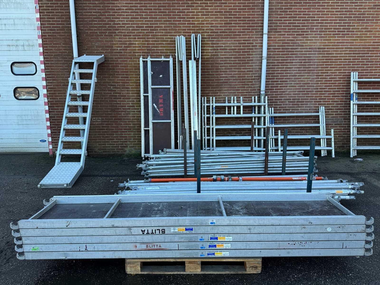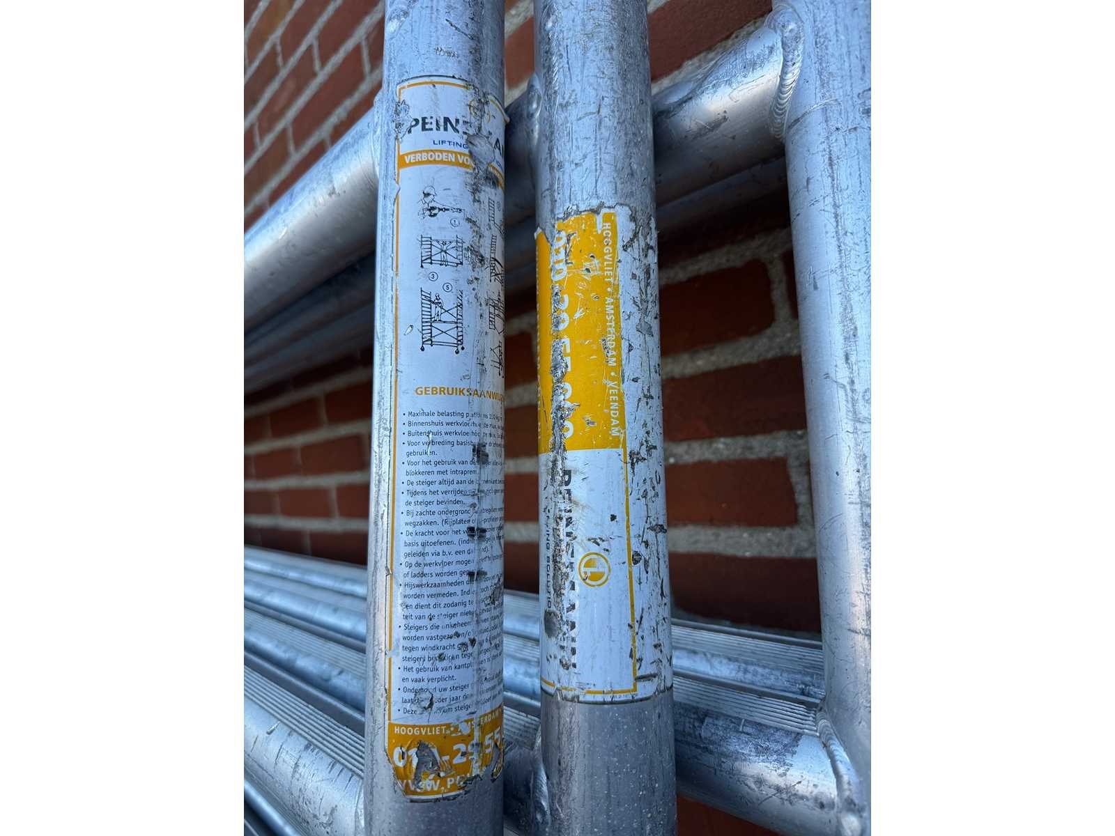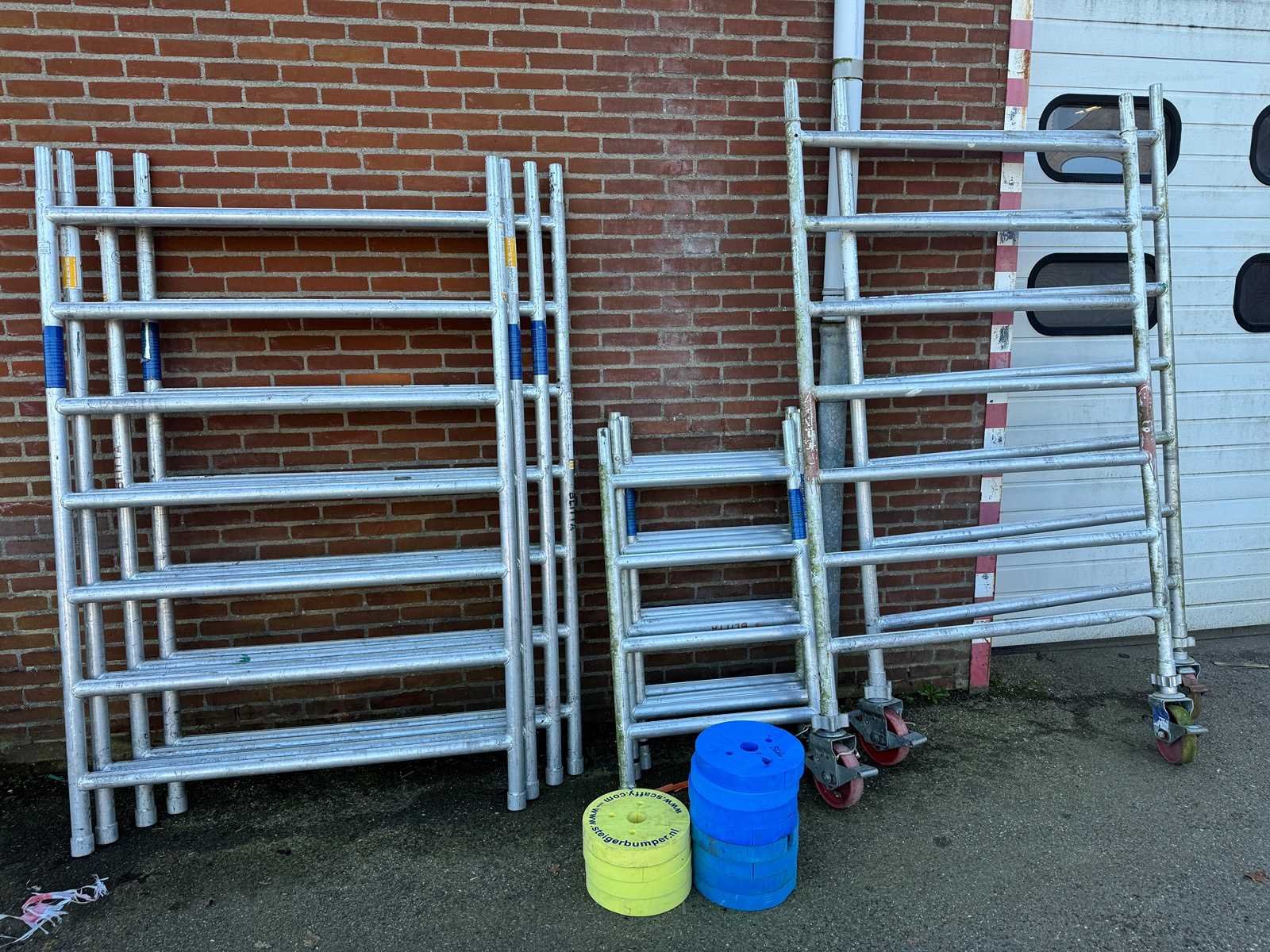 19x opbouwdeel, 18x wiel, 6x leuning, 3x kantplankset, 12x kantplank, 1x trap, 7x platform, 22x schoor, 10x gevelafhouders/verlengers Aluminium: true Aantal opbouwdelen: 19 Opbouwdeel afmeting b: 1340-720mm Kantplankenset: true Aantal leuningen: 6 Aantal platforms: 7 Aantal platforms met luik: 2 Aantal wielen: 18 Met stapeljuk: true