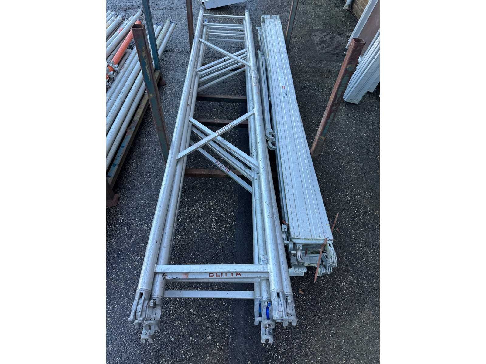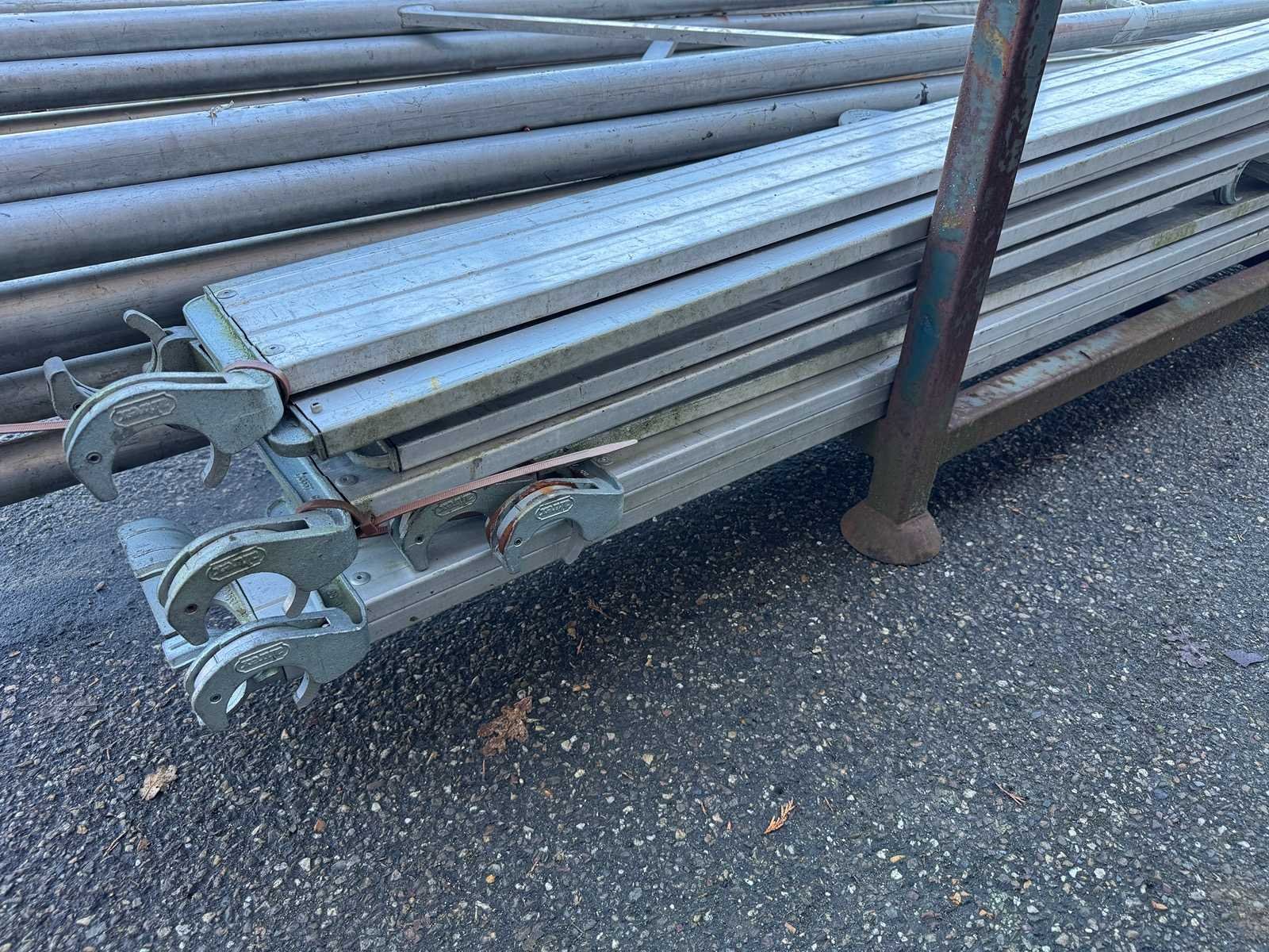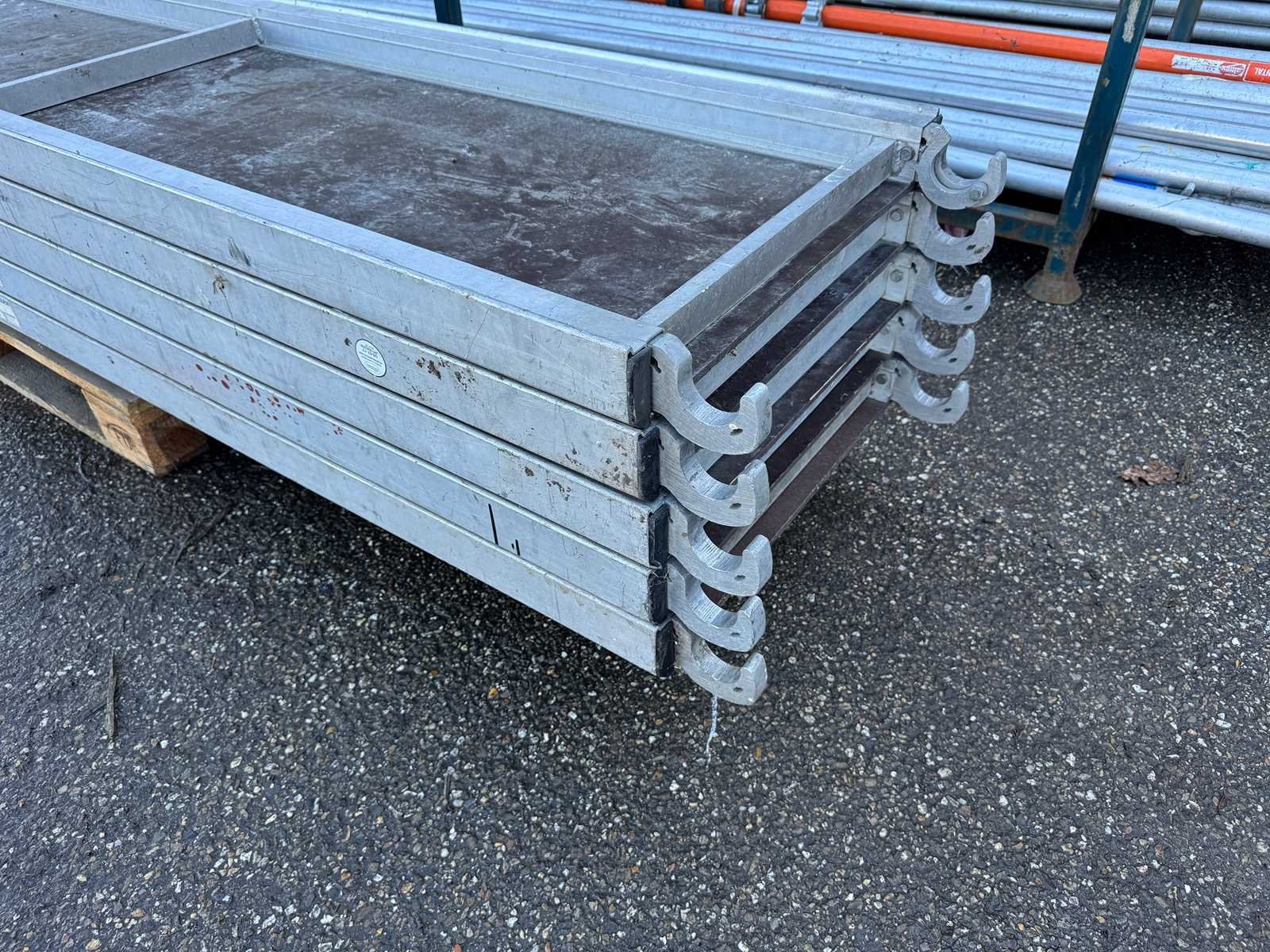 19x opbouwdeel, 18x wiel, 6x leuning, 3x kantplankset, 12x kantplank, 1x trap, 7x platform, 22x schoor, 10x gevelafhouders/verlengers Aluminium: true Aantal opbouwdelen: 19 Opbouwdeel afmeting b: 1340-720mm Kantplankenset: true Aantal leuningen: 6 Aantal platforms: 7 Aantal platforms met luik: 2 Aantal wielen: 18 Met stapeljuk: true