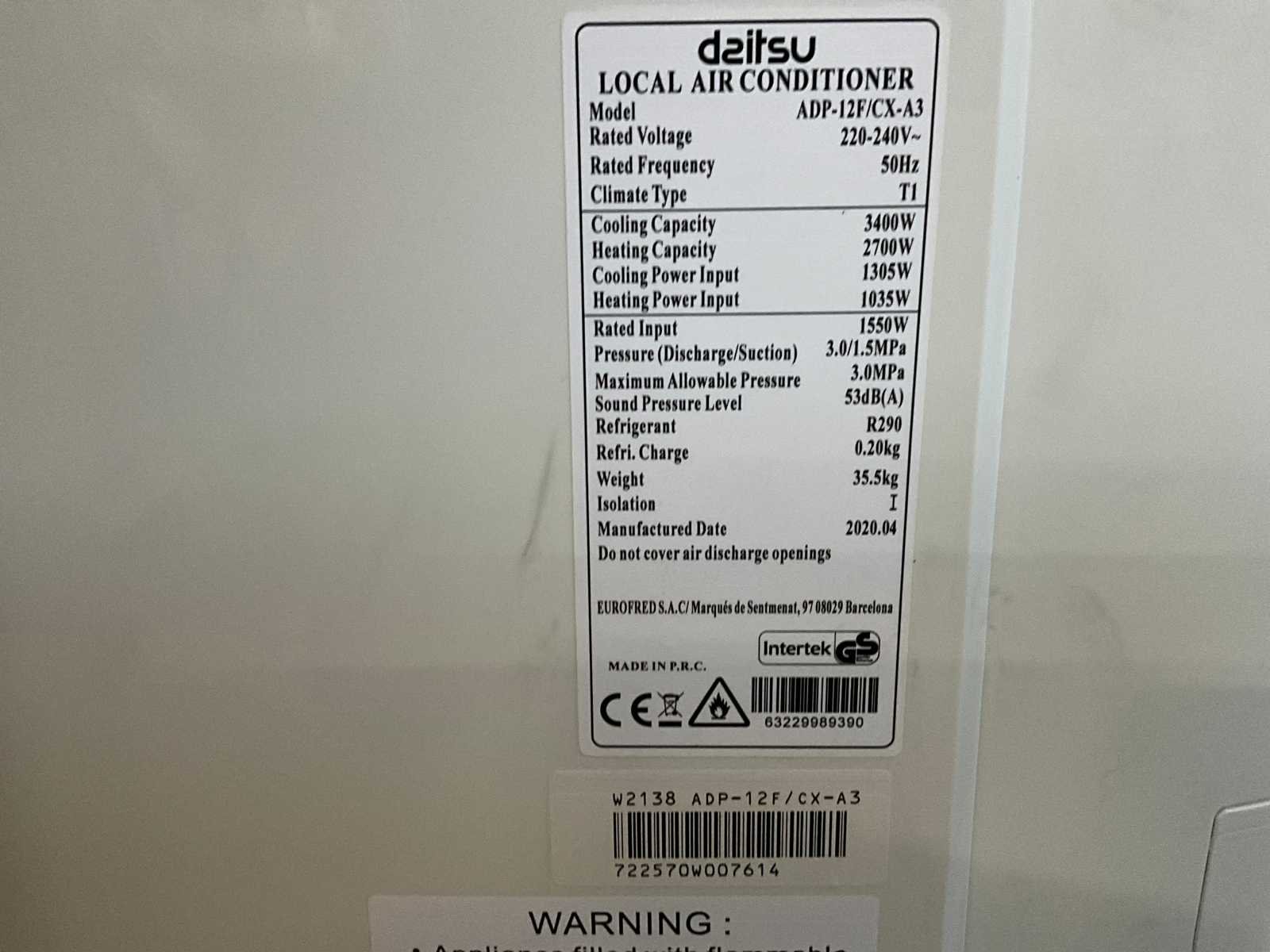 Daitsu mobiele airco adp-12f/cx-a3 (wifi remote)