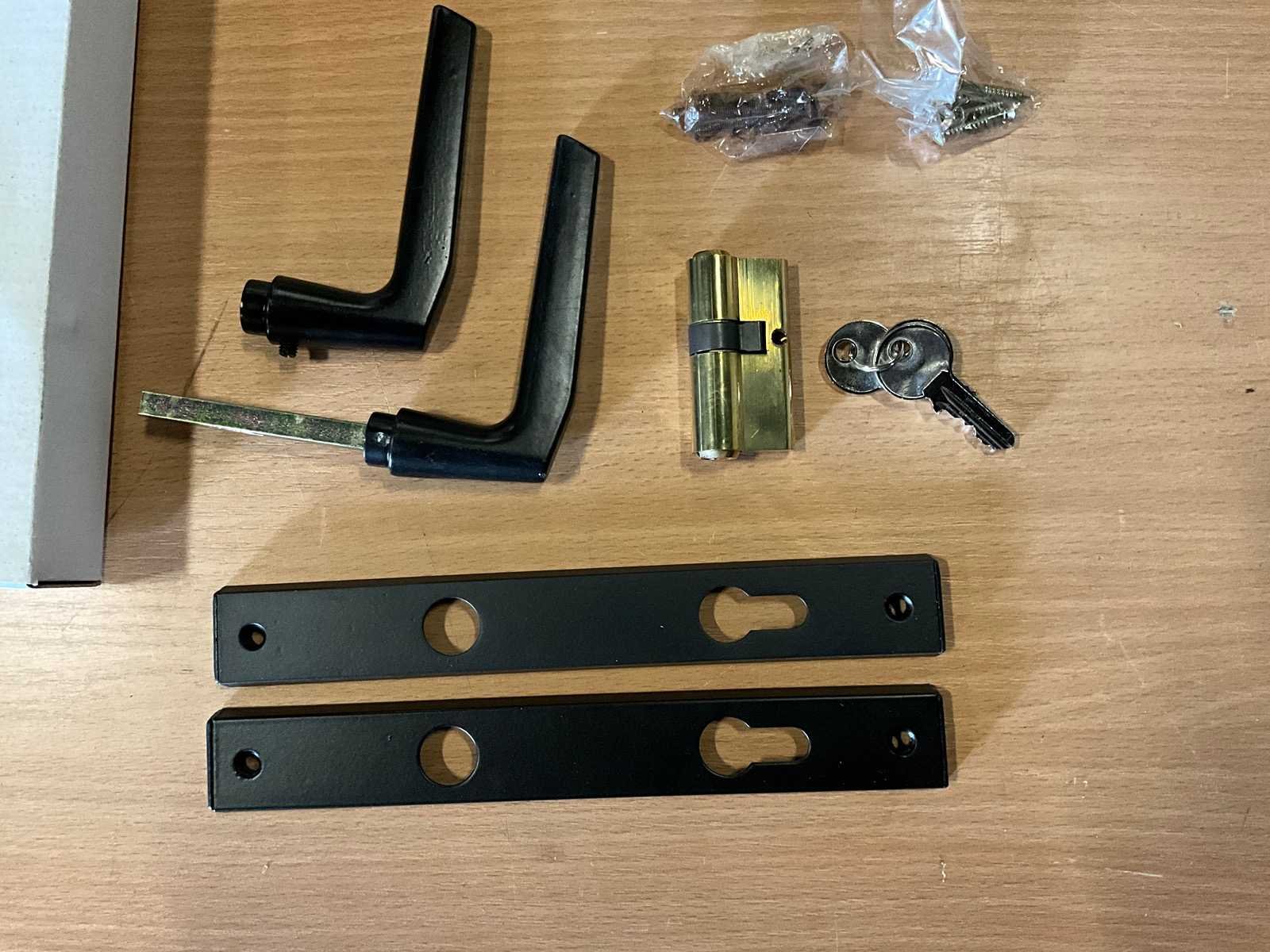 Zwart deurbeslag pc85 v.v. deurklink, cilinder en schild 224x32mm (50x)