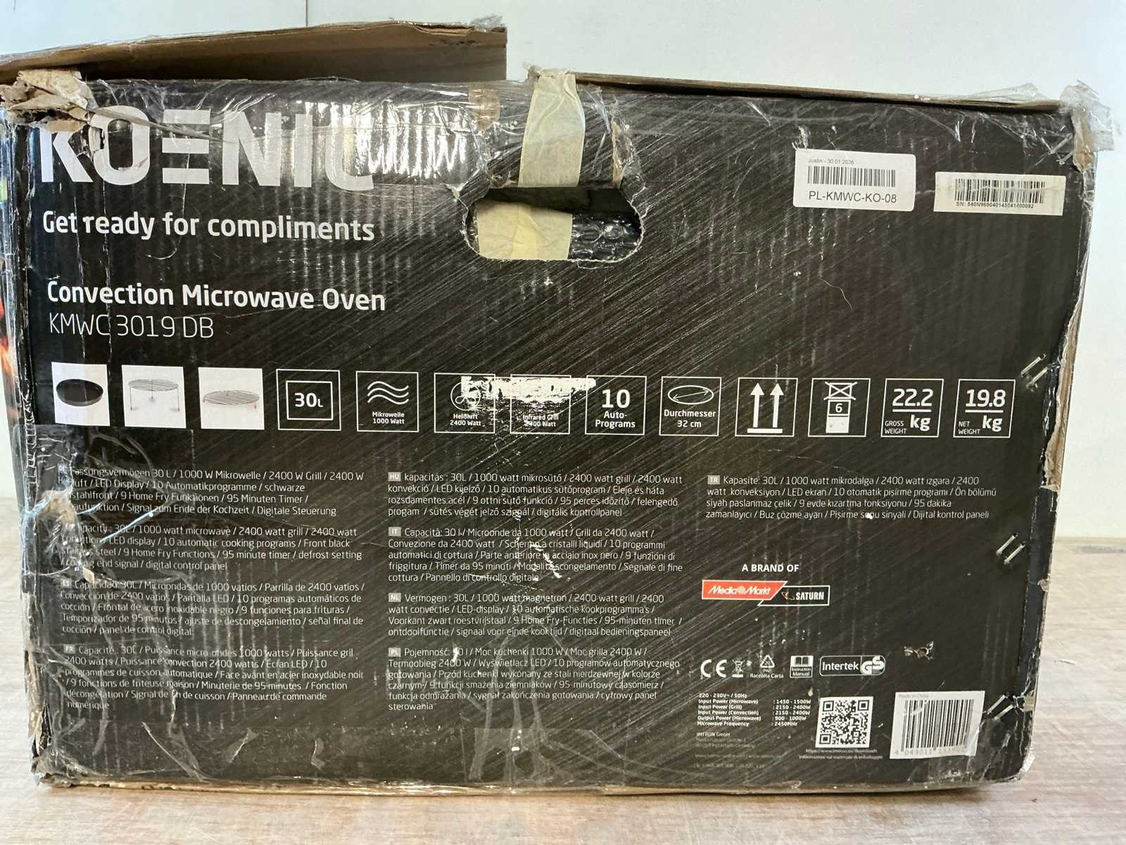 Deze kavel is afkomstig van een van de grootste retailers van Nederland. Het product is mogelijk niet volledig functioneel en origineel verpakt. Daarnaast kunnen er gebruikssporen zijn. Om een goed beeld te krijgen adviseren wij om gebruik te maken van de kijkdag. Met de juiste kennis en onderdelen kunnen apparaten gerepareerd worden. Kom naar de kijkdag om de werking en reden van retour persoonlijk te controleren of testen. Beoordeel persoonlijk of een defect te repareren valt. Wij adviseren u verder om de foto's zorgvuldig te bekijken om een goed beeld te krijgen van de huidige staat van het product en eventueel cosmetische schade te beoordelen. Door te bieden op dit kavel draagt u bij aan een duurzamere e-commerce industrie. Je geeft dit product een tweede leven en draagt bij aan het verminderen van e-waste en CO2 uitstoot. Merk: Koenic - Product type: KMWC 3019 -