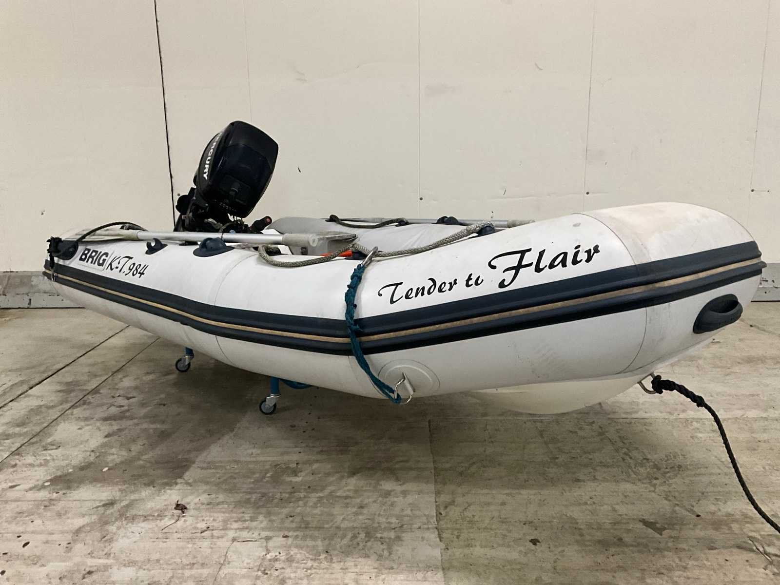 Exclusief transportbok. Betreft een RIB met polyester bodem; Inclusief peddels en zitplankjes en bezinetank Merk: BRIG Rompmateriaal: rubber Brandstof: benzine Lengte: 340cm Breedte: 160cm