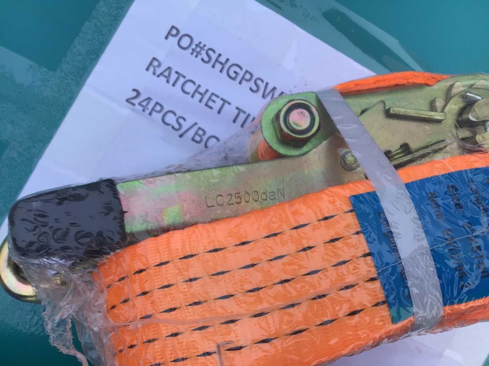 Metalen kist L700mm. X W500mm. X H310mm; inhoud 16 stuks 5 ton; 8 stuks 3 ton; lengte spanbanden 8,23 mtr.; materiaal PES; © ongebruikt. Merk: Easy-Going Type: 3+5 ton Bouwjaar: 2026 GS Code: 820559