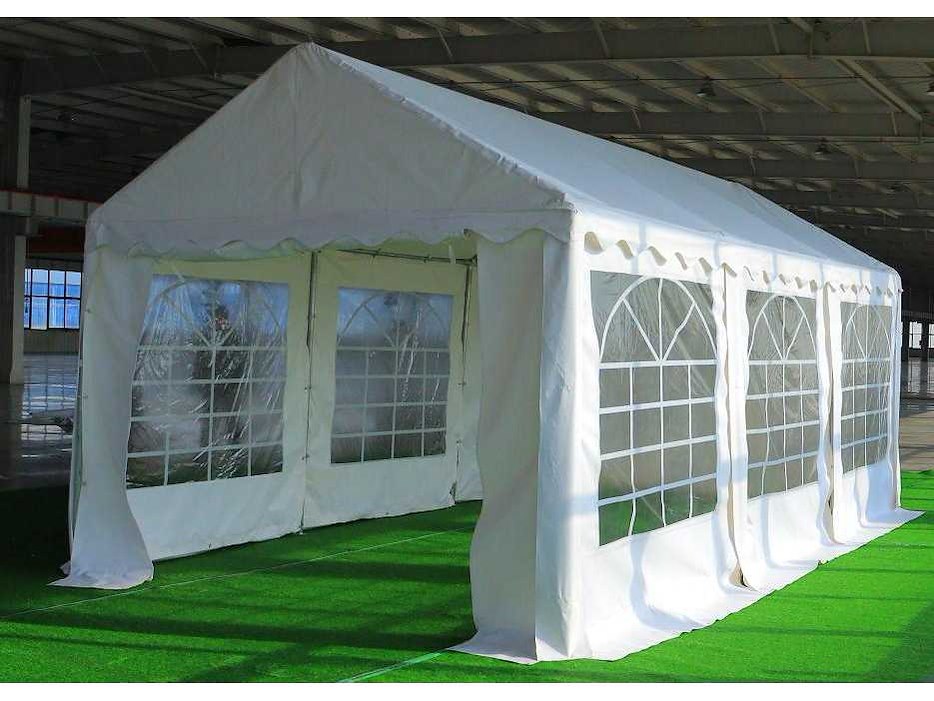 Ongebruikt; voorzien van gegalvaniseerde buizensysteem frame Φ 37x0,8 mm verbinding stukken Ø42x1,2 materiaal PVC 380 gram; kleur wit; zijwandhoogte 2,0 mtr; nokhoogte 2,8 mtr ongebruikt in houten kist Merk: Easy-Going Model: PT 0306FE Product type: (6,0 x 3,0 x 2,8 mtr) Kleur: wit Materiaal: pvc GS Code: 6306299000