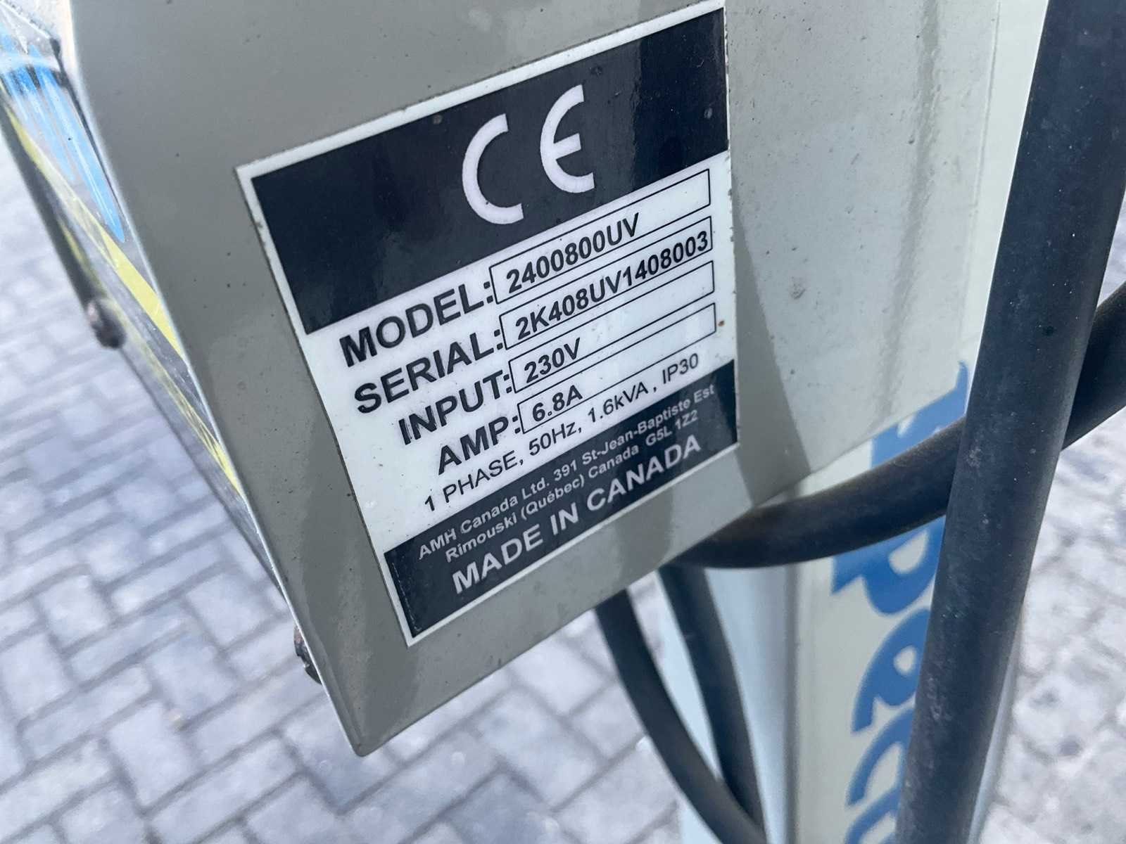 Merk: AMH Canada Ltd. Modelnummer: 2400800UV Serienummer: 2K408UV1408003 Stroomvoorziening: 230 volt Merk: Spec UV Model: Spectratek Product type: 2400809