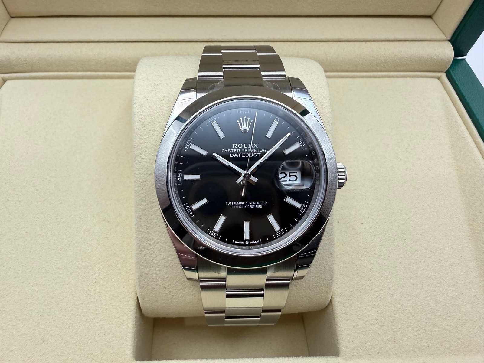 Key Features: Model: Rolex Datejust 41 mm Reference: 126300 Condition: Brand new, unworn Material: Stainless steel Dial: Black Bezel: Smooth Bracelet: Oyster Full set: Includes box, papers, warranty card, and Rolex tag Warranty: 5-year Merk: Rolex Model: Datejust 41 Bouwjaar: 2025 Referentienummer: 126300 Materiaal kast: Steel Materiaal horlogeband: Steel Oyster Smooth Materiaal sluiting: Steel Wijzerplaat: Black Kastmaat: 41 mm