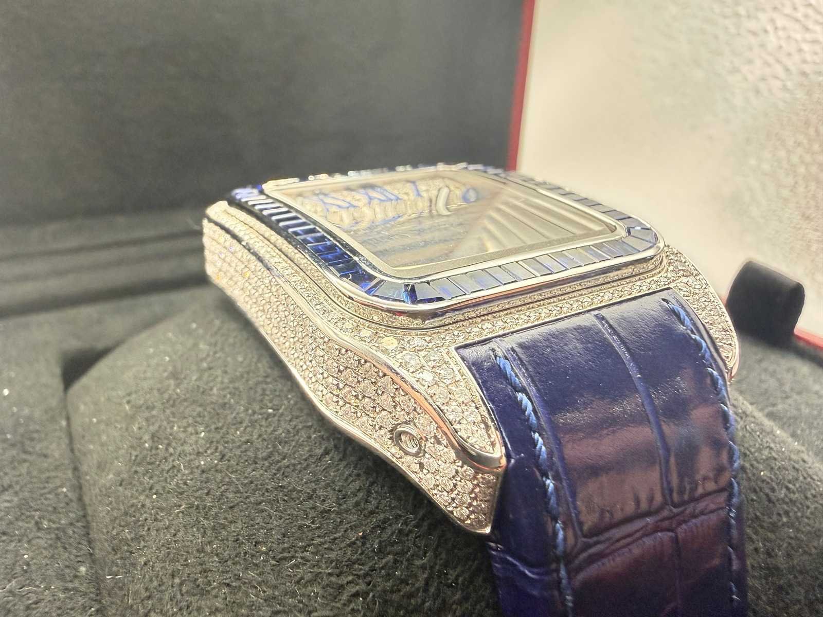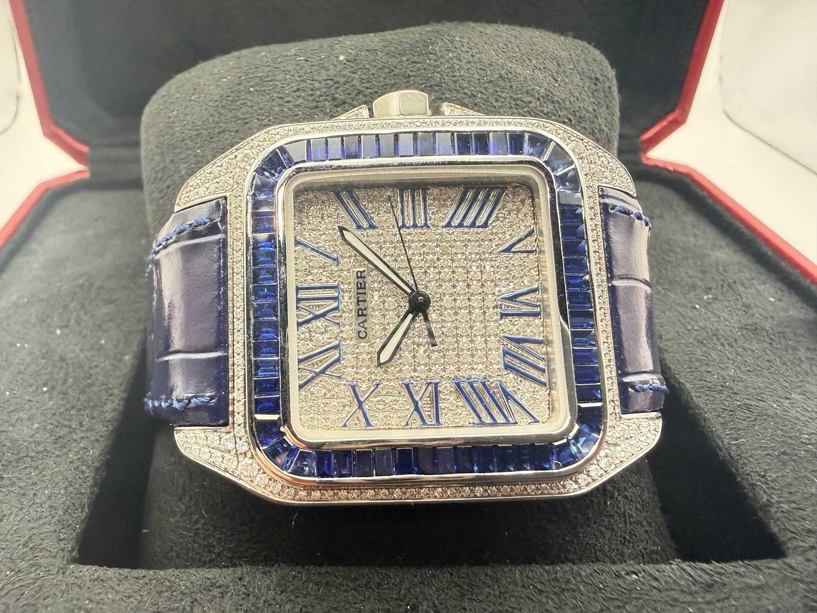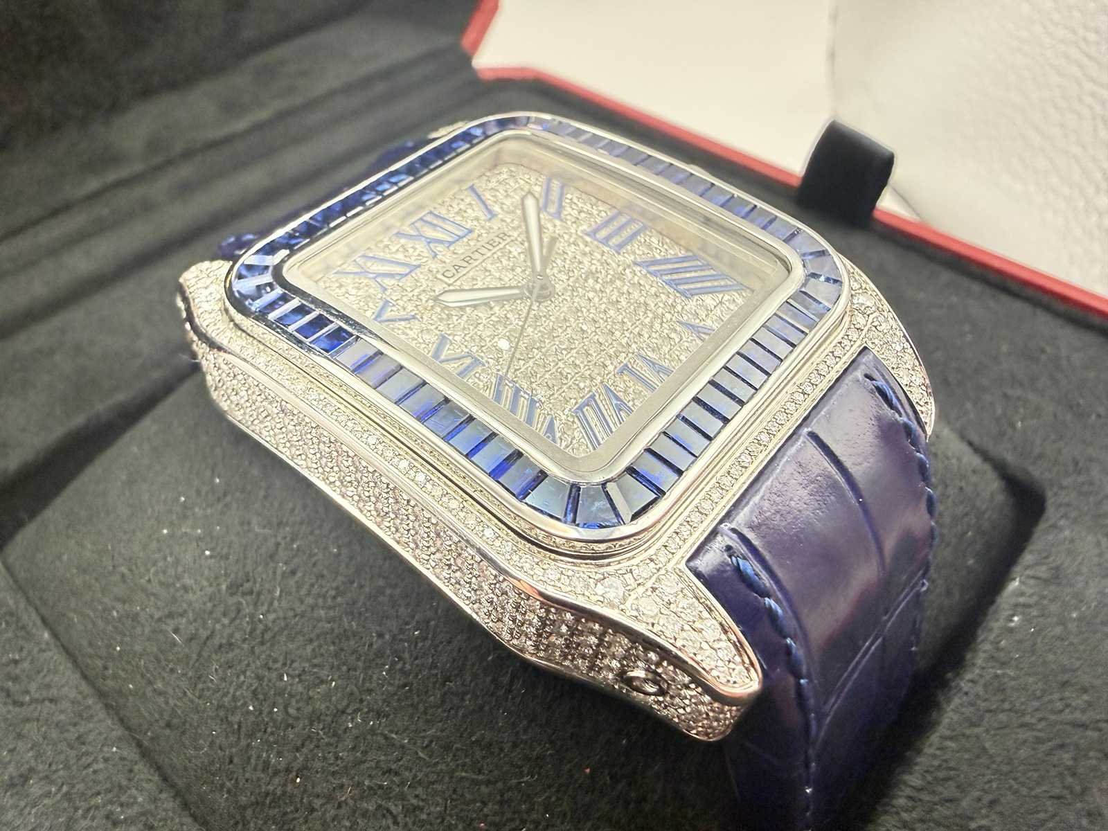 Cartier santos 100 xl | iced out with natural diamonds | unworn | blue