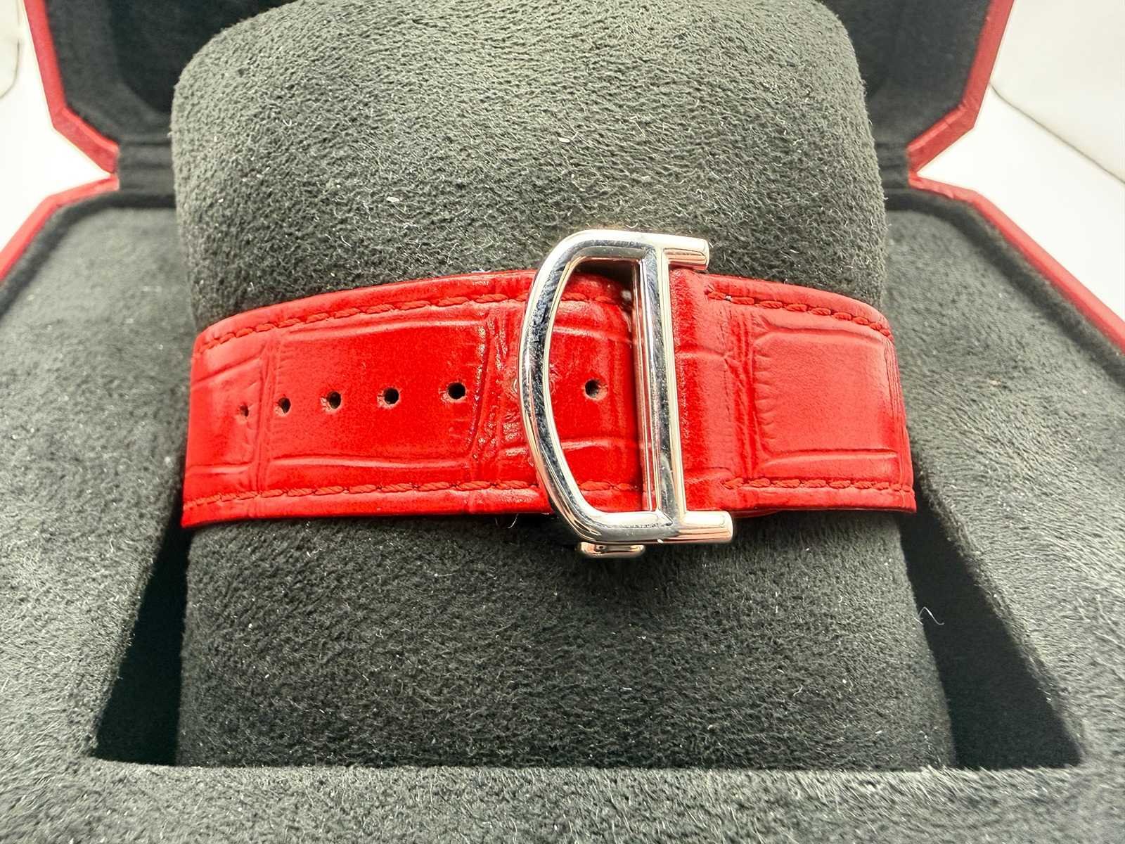 Key Features: Model: Cartier Santos "Large" Condition: Unworn Diamonds: Natural Case & dial: Fully iced out Strap: Red Set: Comes with Cartier box Please note: this is a customised watch, meaning it may include components that differ from the original factory specifications. Customisation can vary widely, so we highlight the following possibilities for full transparency: Aftermarket parts The watch may include third-party components (such as bezels, dials, hands, crystals or gem settings) that are not produced by the brand owner. These parts are often added for aesthetic reasons, but are not considered original by the manufacturer. Original parts from other models Some components (e.g. dials or bracelets) may have been sourced from other genuine watches by the same brand. While these parts are authentic, they were not originally fitted to this particular model or reference, which may affect collectability or eligibility for manufacturer service. Non-original parts In some cases, customised watches may include parts that are neither original nor manufactured by the brand. These components can affect the watch’s value. We encourage all bidders to carefully review the photos and description before placing a bid. Keep in mind: customised watches may not be eligible for official service or warranty from the brand. All bids should be placed with full awareness of the customisation status described above. Merk: Cartier Model: Santos "Large" Bouwjaar: 2024 Referentienummer: WSSA0018 Materiaal kast: Steel / Diamonds Materiaal horlogeband: Red Leather Strap Materiaal sluiting: Steel / Diamonds Wijzerplaat: Diamonds Kastmaat: 39 mm