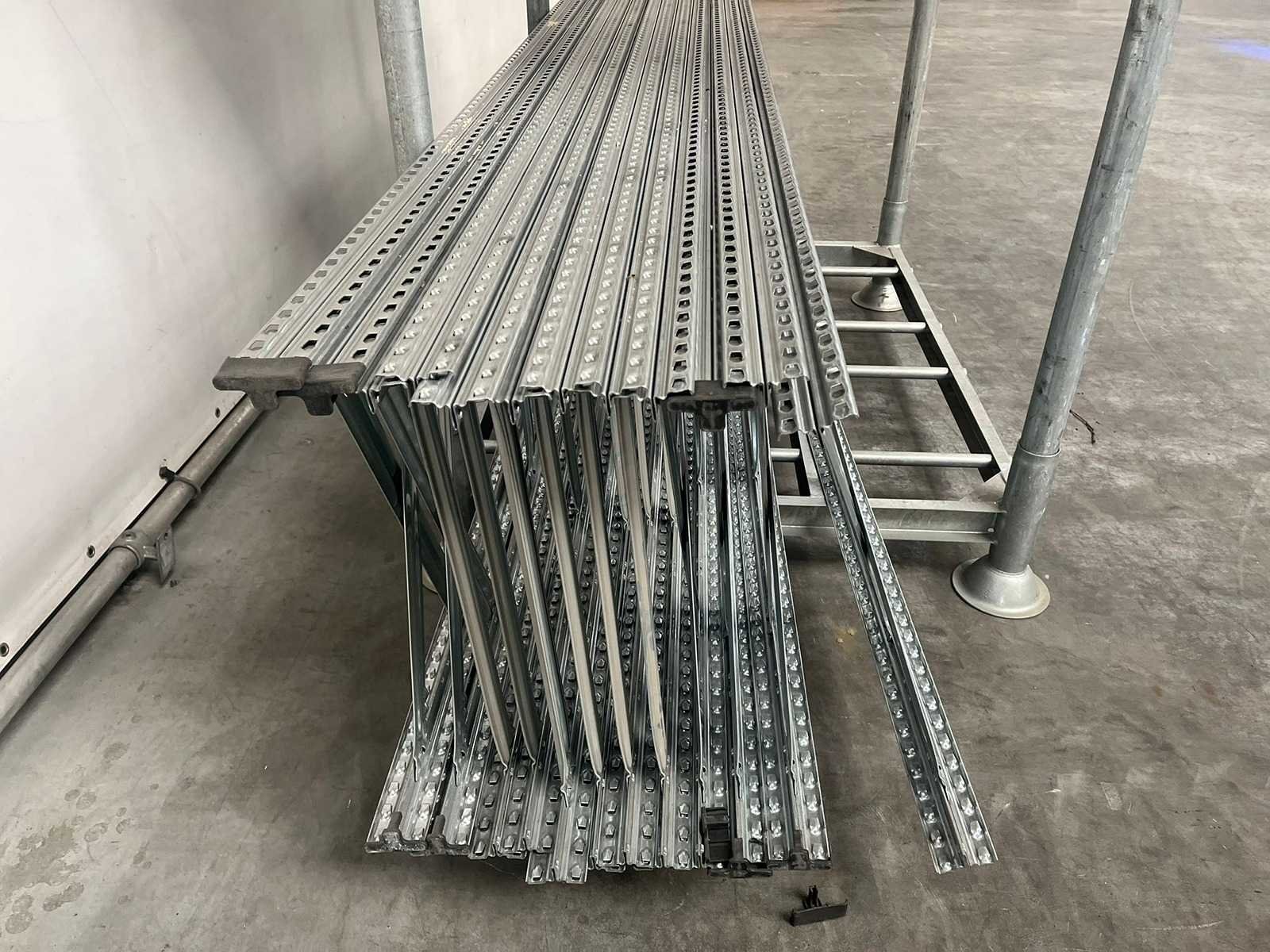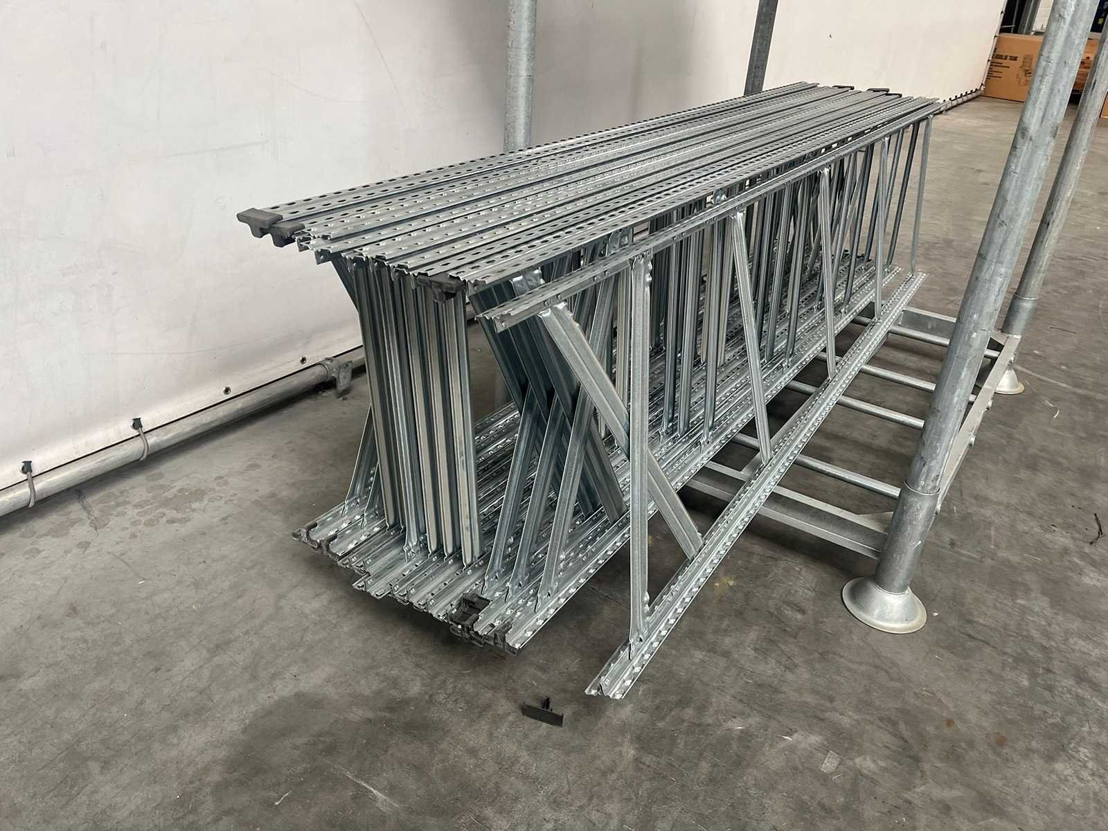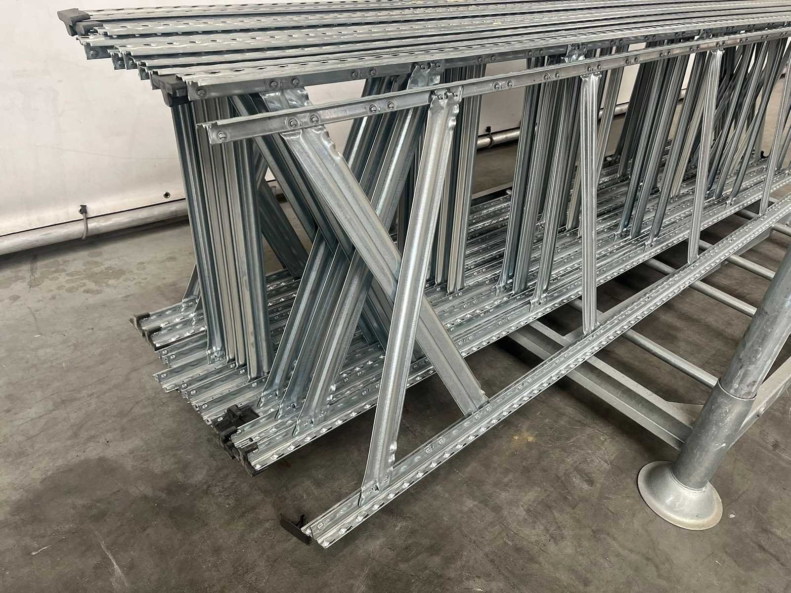 Zonder stapelbokken; circa 120 liggertjes; Merk: Metal sistem Sectie afm. b: 1200mm Sectie diepte: 600mm Sectie afm. h: 2500mm Aantal staanders: 12 Aantal liggers: 120