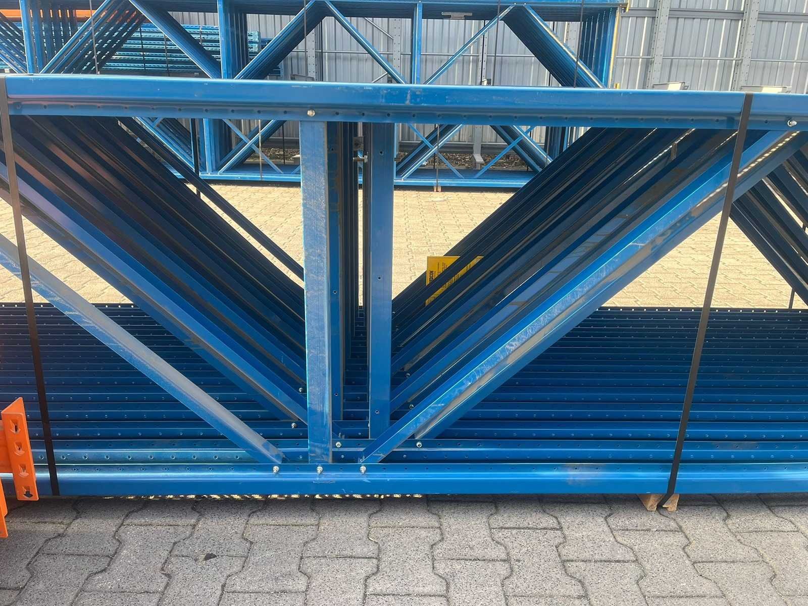 Mogelijk wat schade in de staanders; Merk: Nedcon Type: NT Aantal secties: 11 Sectie afm. b: 2645mm Sectie diepte: 900mm Sectie afm. h: 8100mm Aantal staanders: 12 Aantal liggers: 80 Demontabel: true