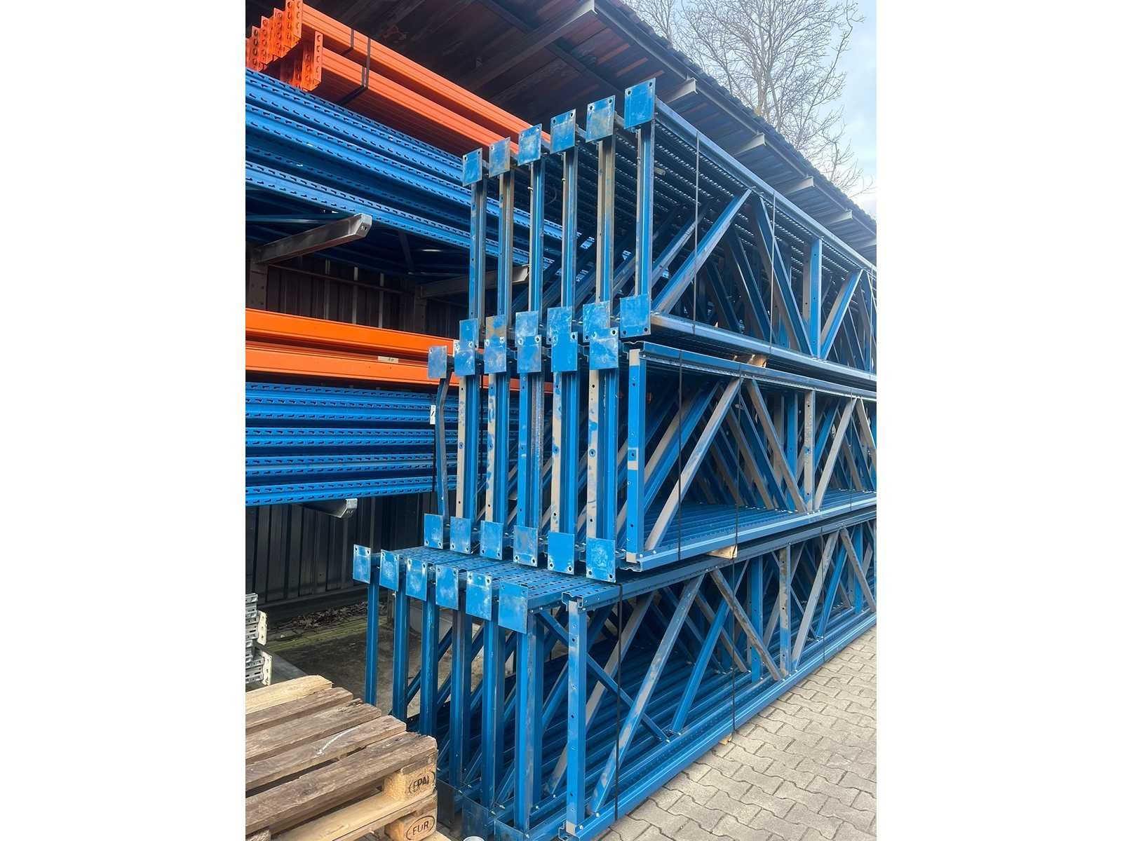 Mogelijk wat schade in de staanders; Merk: Nedcon Type: NT Aantal secties: 11 Sectie afm. b: 2645mm Sectie diepte: 900mm Sectie afm. h: 8100mm Aantal staanders: 12 Aantal liggers: 80 Demontabel: true
