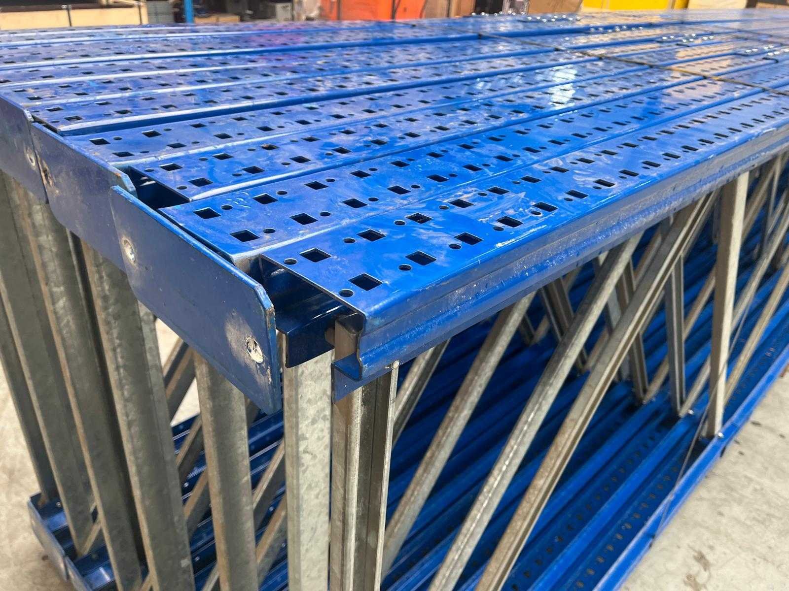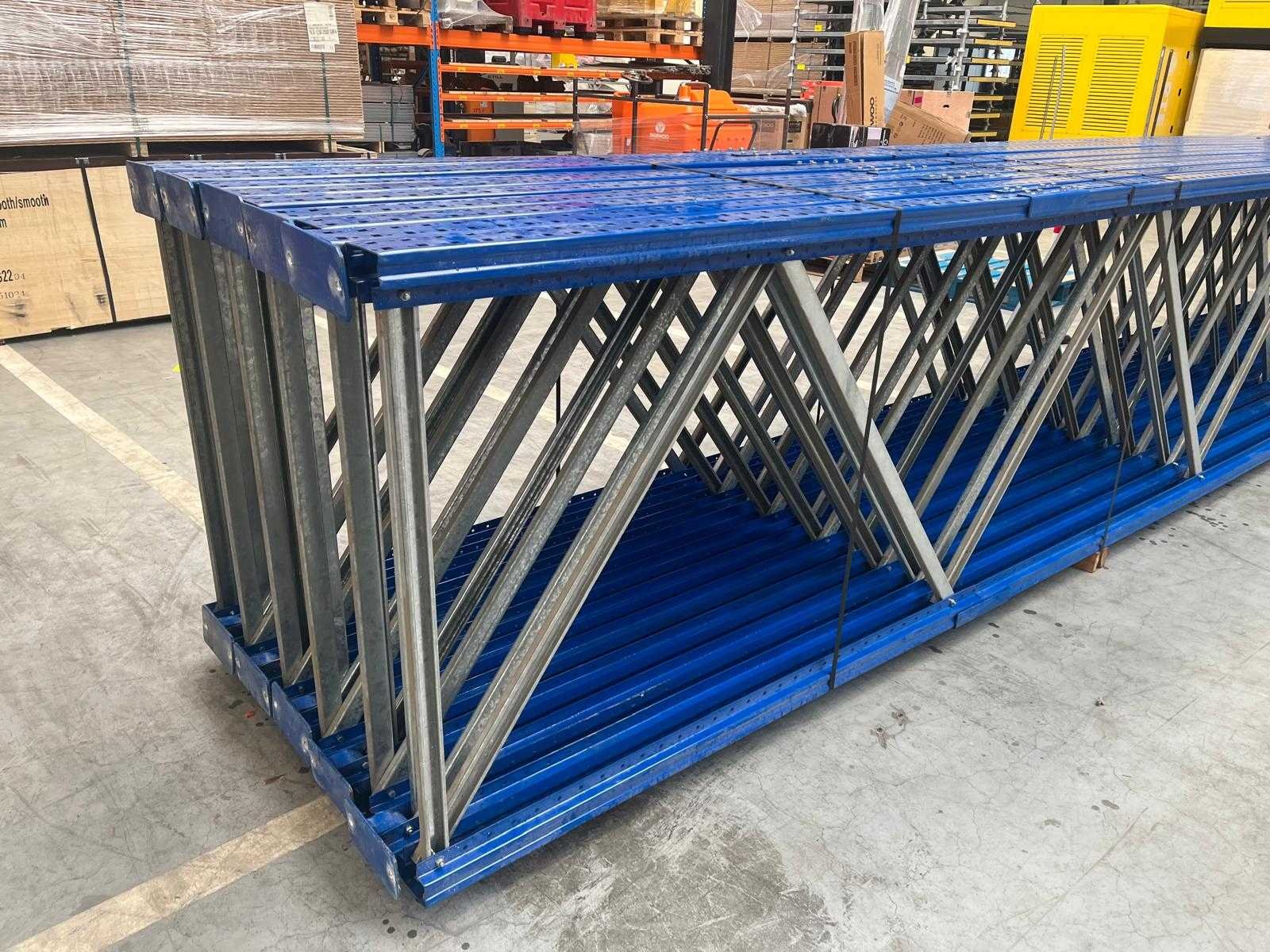 11 staanders in 1 pakket; word netjes gebundeld uitgeleverd; reeds professioneel gedemonteerd; Merk: Vogelsang Sectie afm. b: 3600mm Sectie diepte: 1100mm Sectie afm. h: 10700mm Aantal staanders: 11 Aantal liggers: 100 Demontabel: true
