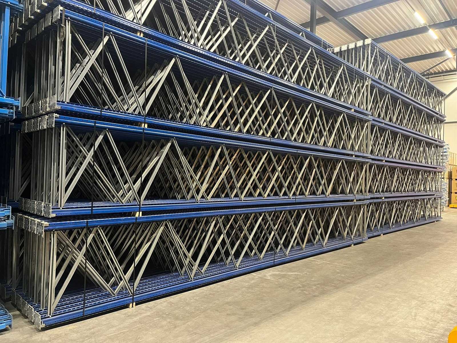 Staander afmeting per stuk; 8500x1100x120mm; ligger afmeting per stuk; 3600x160x50mm; voor zware pallets; ligger laag draagvermogen 4000kg; Merk: Jungheinrich Type: MPB Sectie afm. b: 3600mm Sectie diepte: 1100mm Sectie afm. h: 8500mm Aantal staanders: 10 Aantal liggers: 80 Max. sectiebelasting: 16000kg Demontabel: true