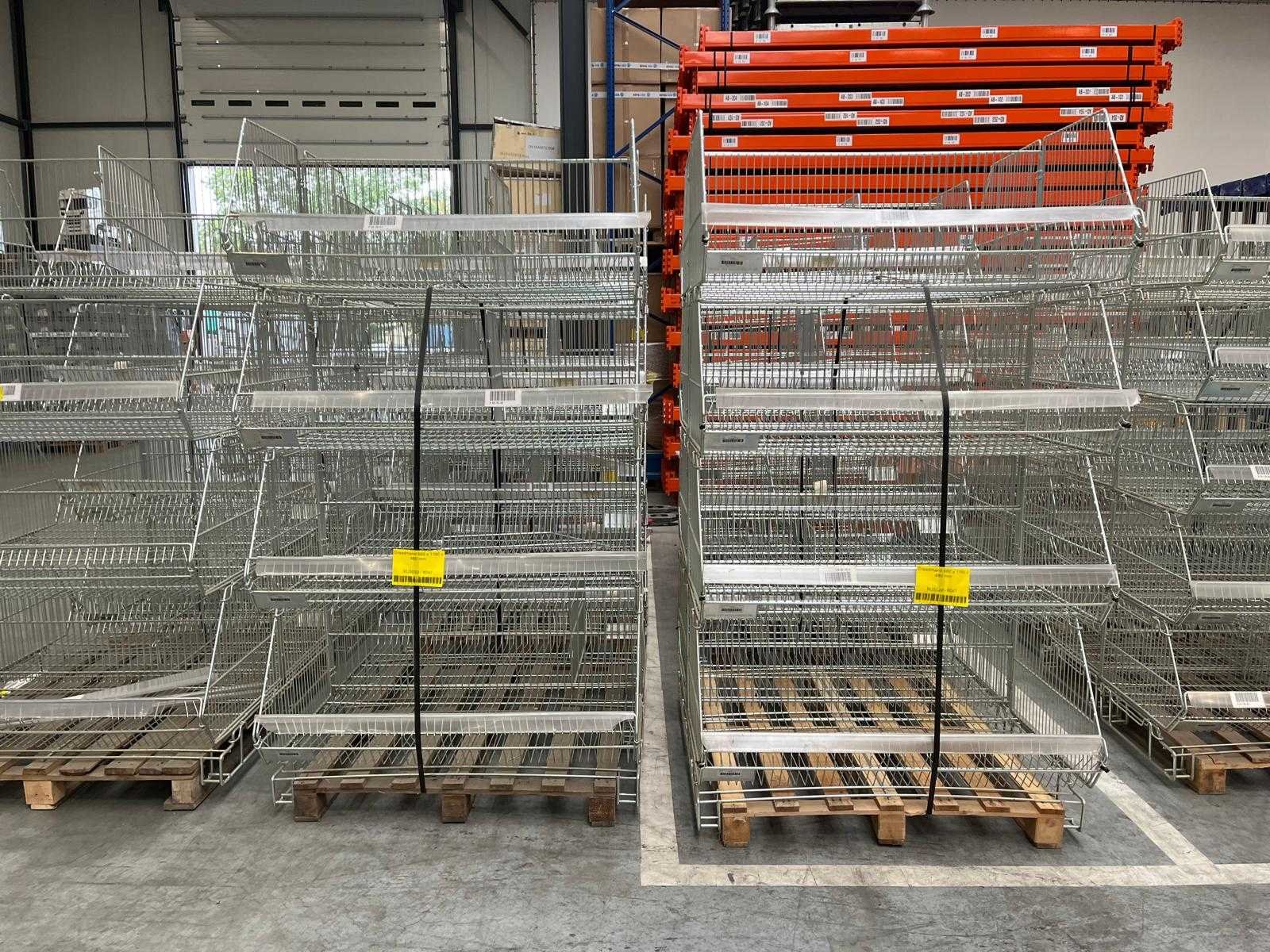 Draadmanden zijn stapelbaar; staal; let op; tussenschotjes kunnen ontbreken bij draadmand; er staan 8 draadmanden op 1 pallet; 8047 Totale afmeting L: 680mm Totale afmeting Breedte: 1160mm Totale afmeting Hoogte: 480mm