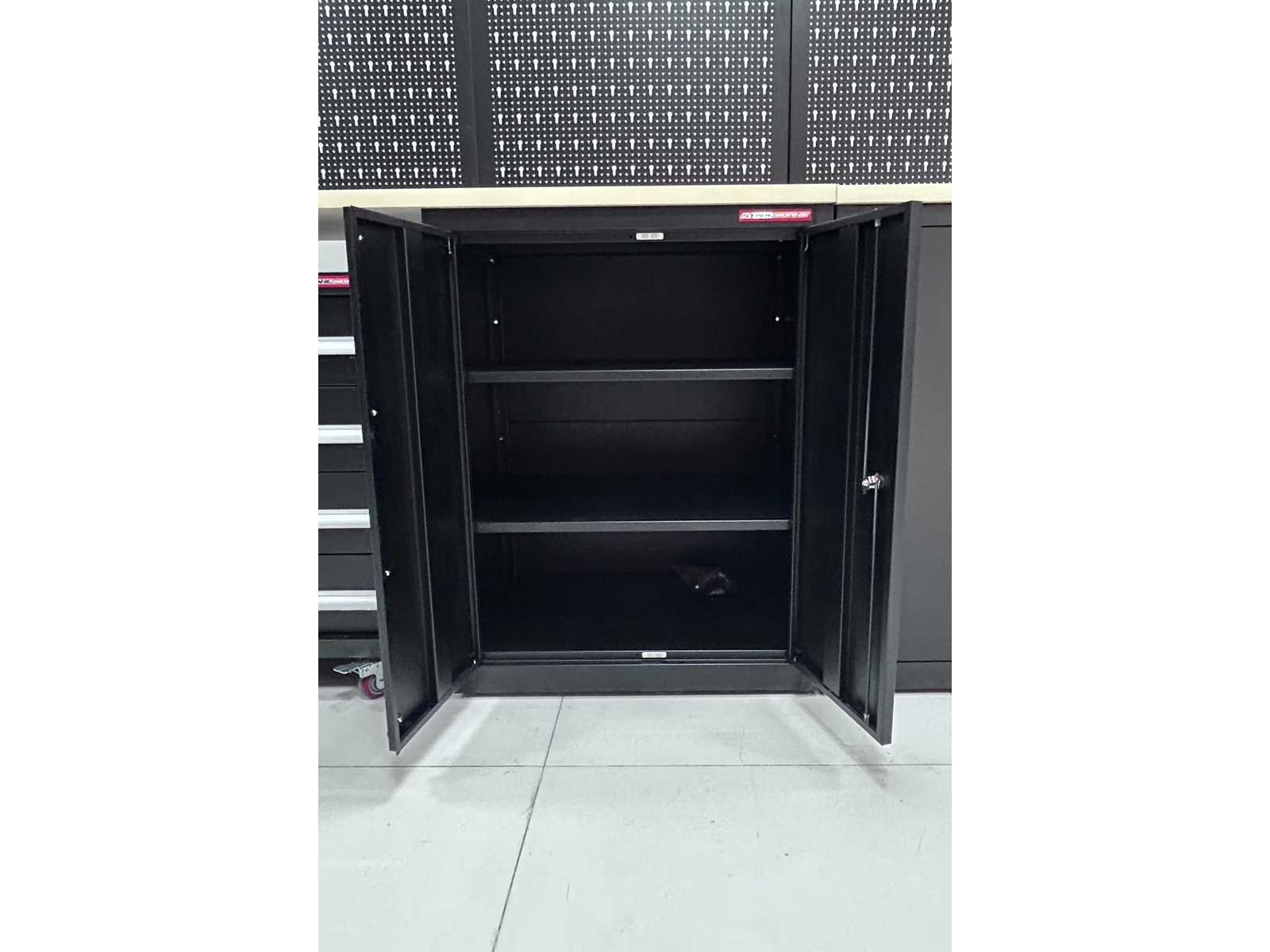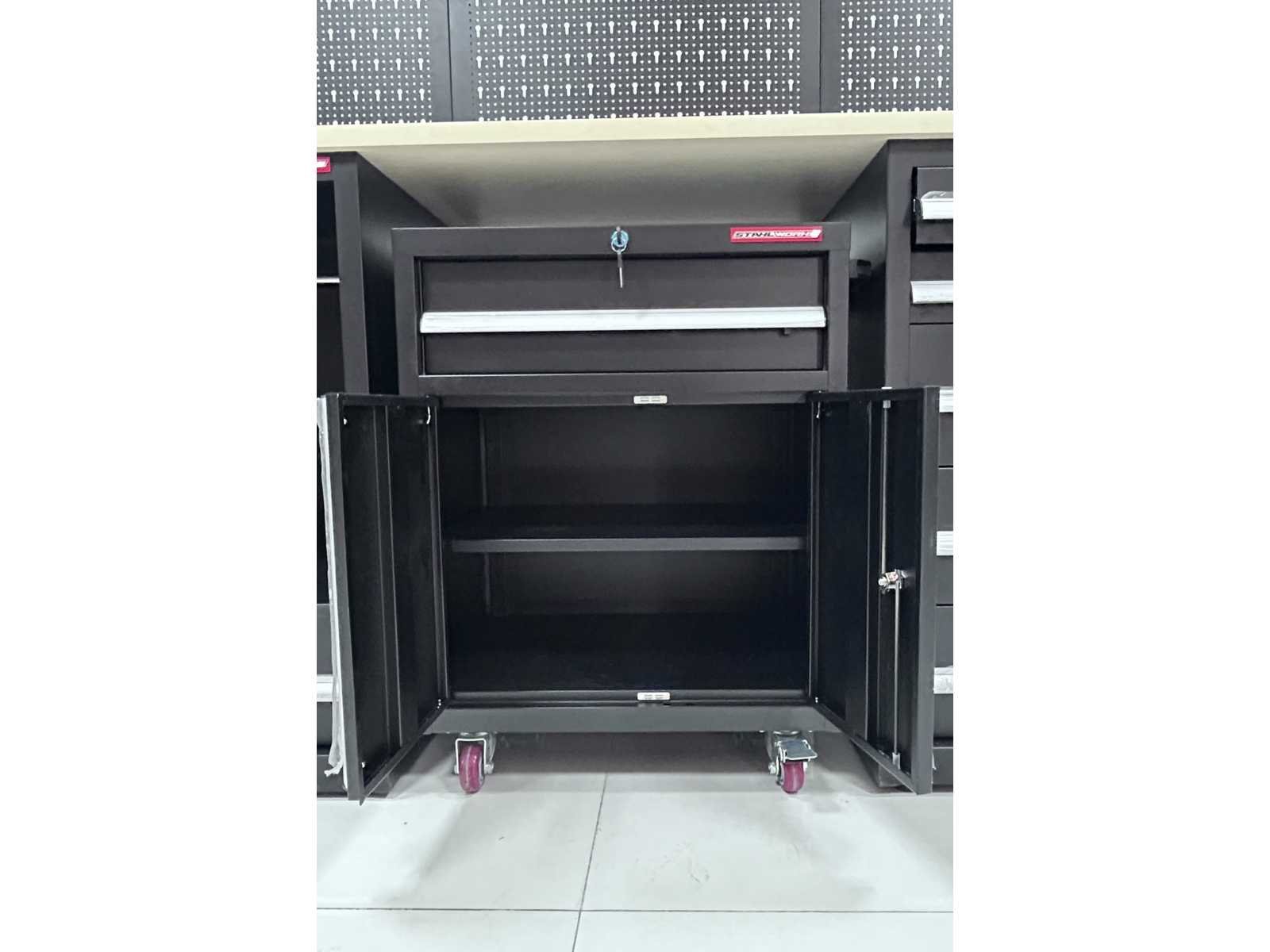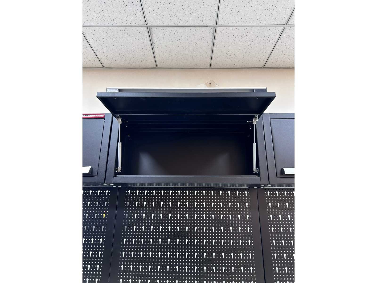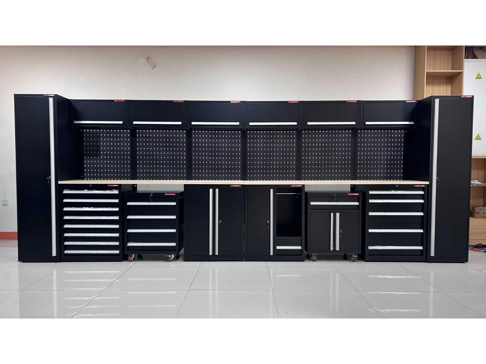 Voorzien van poeder coating; 30 mm houten werkblad; kleur zwart; ongebruikt in dozen (transport afmeting 3 m3) Merk: Stahlworks Model: TC-202 Product type: 550x55x203 cm Materiaal: SPCC steel