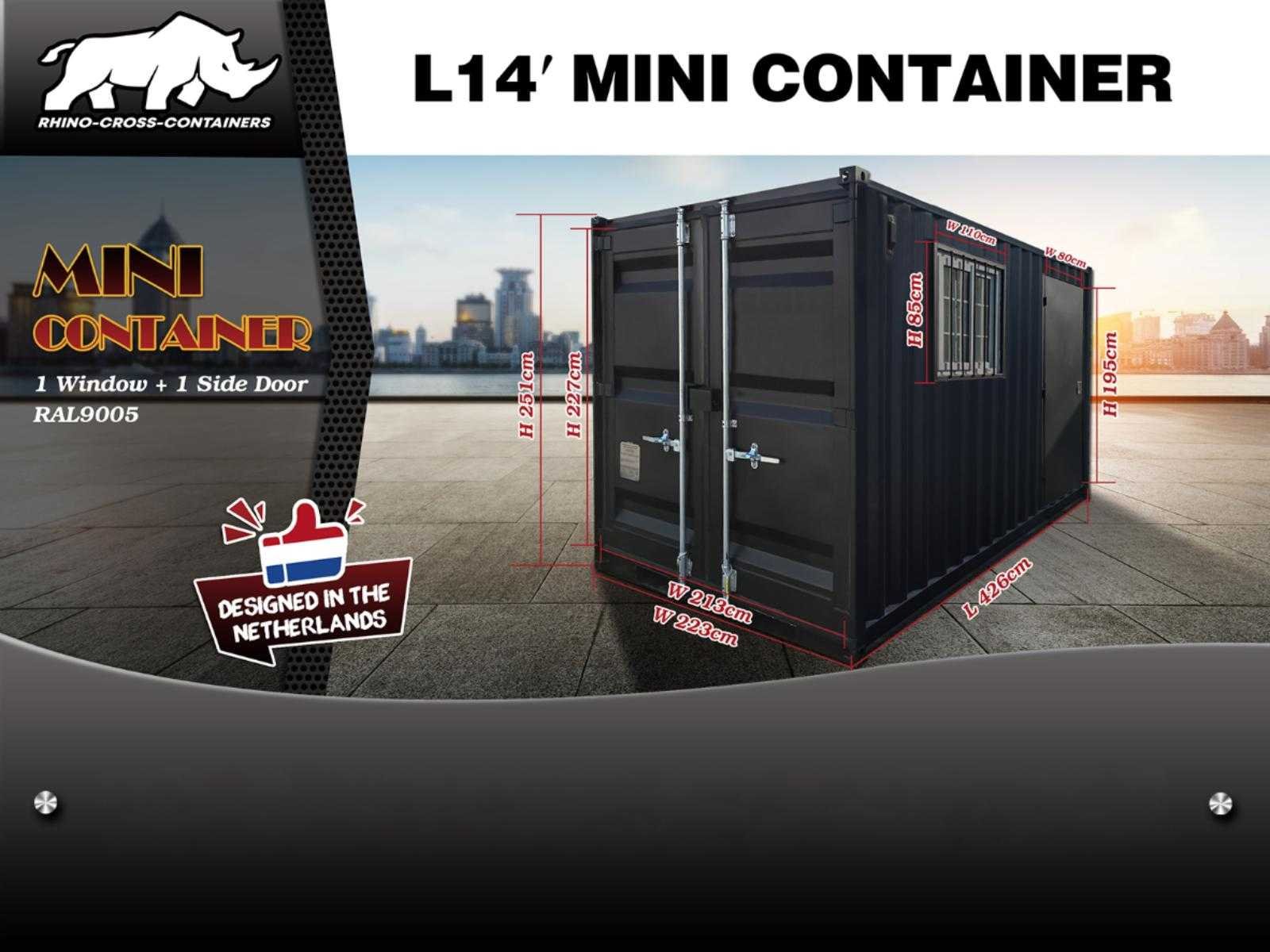 Rhino-cross-containers 14ft mini container met deur en raam