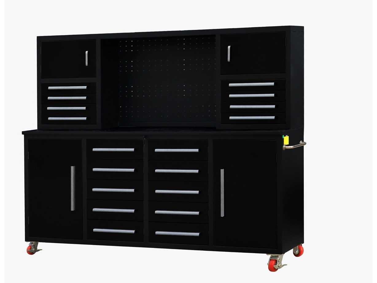 Voorzien van Gepoedercoat staal; 18 lades 4 kastdeuren; Ongebruikt (Transport afmetingen 2205x600x1700mm) Merk: Rhino-Cross-Workbench Type: H7FT-18D-1C Zwart