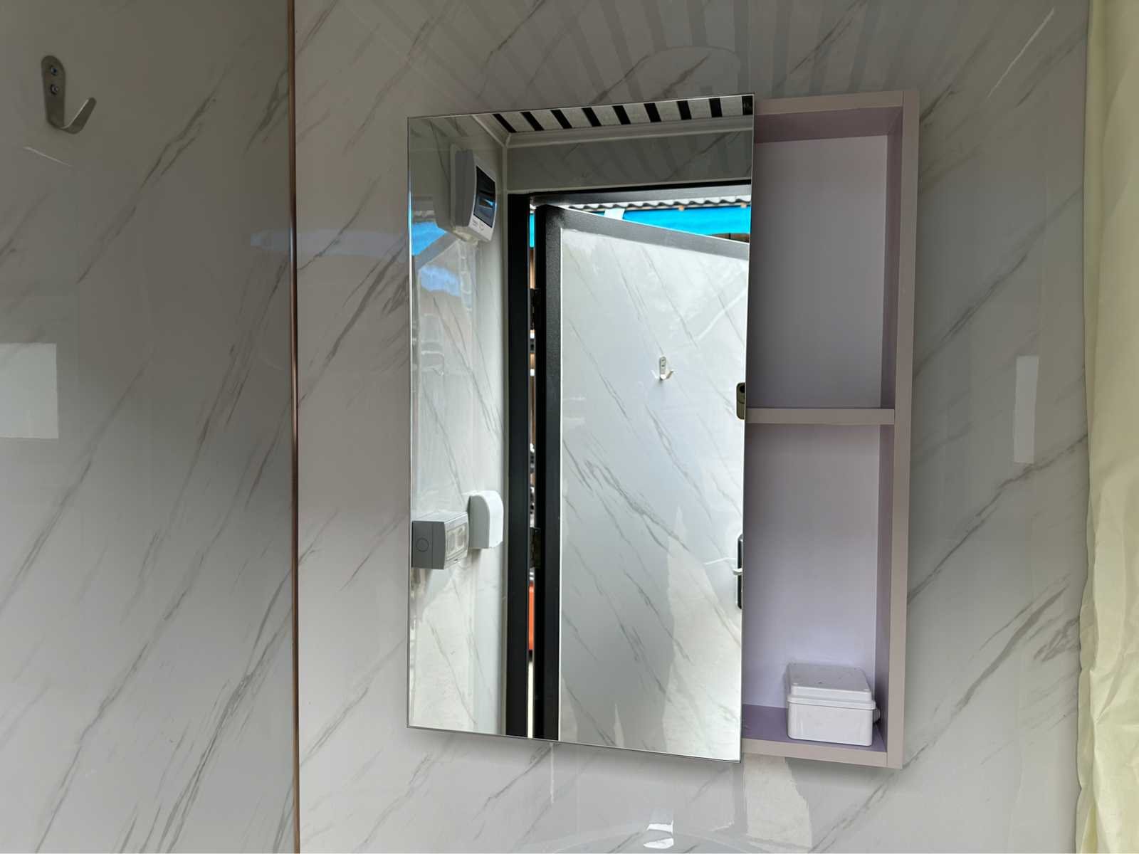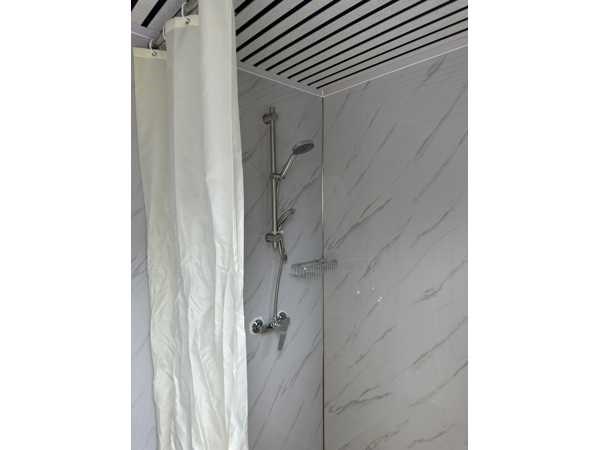 V.V. douche; wastafel met spiegelkast; 230 Volt aansluiting; ventilatiesysteem; plafondverlichting; afsluitbaar met sleutel en knopcilinder; lepelgaten en hijsogen; ongebruikt Merk: Stahlworks Type: Deluxe Bouwjaar: 2025 Aantal ramen: 1 Aantal wastafels: 1 Aantal douches: 1