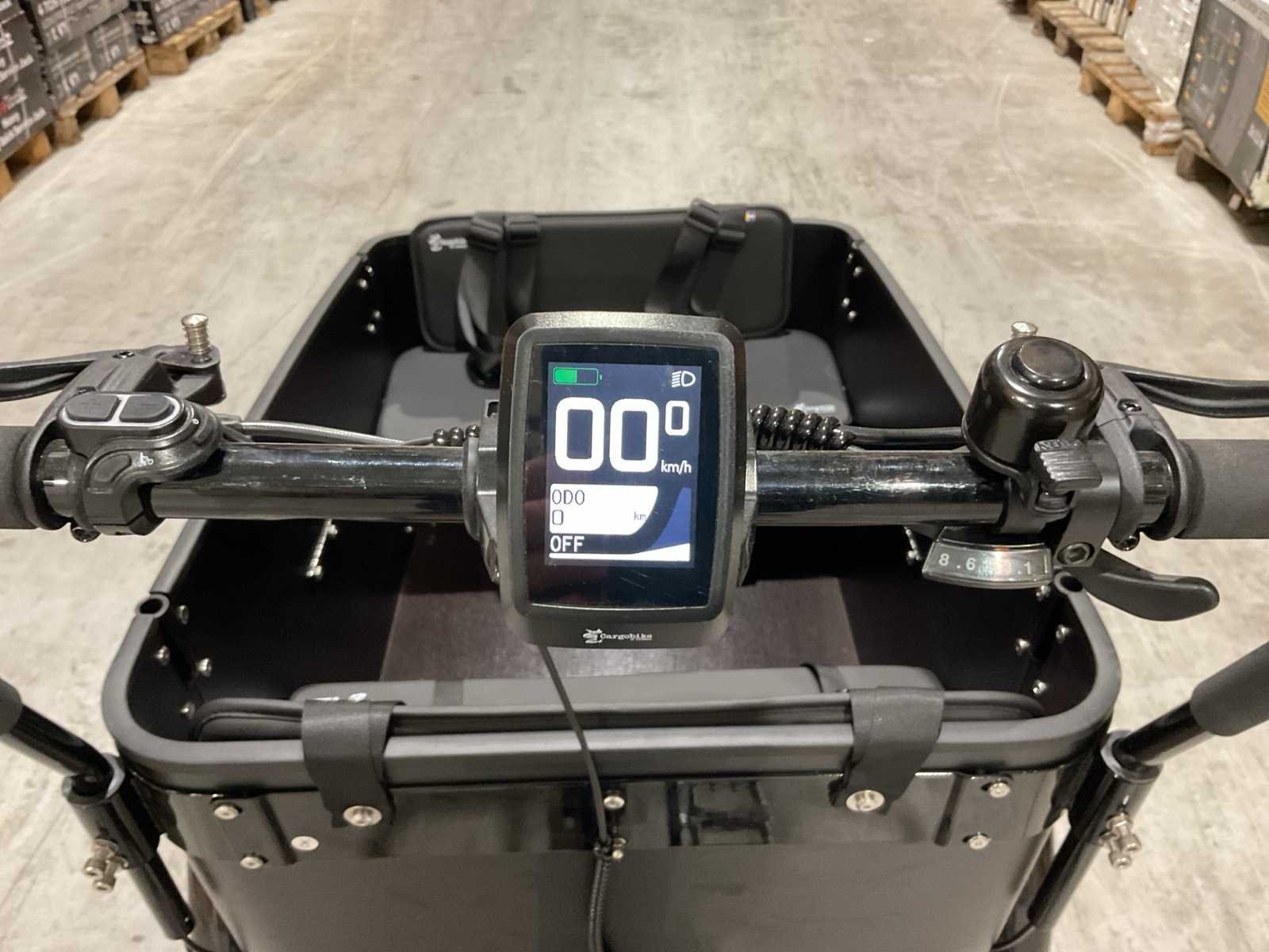 Voorzien van; sleutels voor deurtje en accu; bereik 50km; 110Nm koppel; Gears 8-speed Shimano Altus; Automatische verlichting Gaat aan bij schemering; 19,6 Ah Batterijcapaciteit; TÜV-gekeurd Kwaliteit getest in Duitsland; Kleur Poedercoating, Zwart; Elektromotor 250 Watt, Ananda middenmotor 110 Nm; Accu 19,6 Ah, 36 Volt, Samsung/LG; Band 24" x 2.15 voorband, 26" x 2.15 achterband, lekbestendig, reflecterende strip langs de zijkant; Zadelzacht universeel, snelspanner voor zithoogteverstelling; Stuur verstelbaar 115-130 cm, gevoerd stuur; ongebruikt in plastic Merk: Cargobike Model: Delight Product type: elecElectrische Bakfiets Remsysteem: Hydraulische Bengal, schijfrem Versnellingen: 8 Framemaat: 24 en 26 inch Gewicht: 60kg
