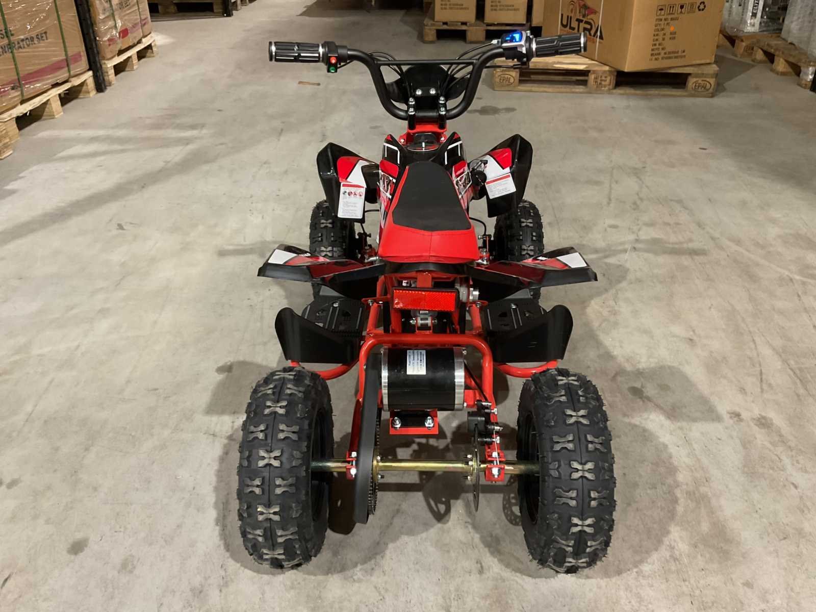 Voorzien van 1000W 36V elektrische motor; ouderen sleutel 3 verschillende snelheden; achterwielaandrijving; bandenmaat 6” inch; 2 sleutels; ongebruikt in doos (transport afmetingen 100x55x45 cm 48kg) Merk: Ultra Motocross Model: MA03E Product type: ATX 1000 RD Gewicht: 45kg Aantal sleutels: 2 Transmissie: Automaat Bouwjaar: 2025 Vermogen (kW): 1kW Brandstof: Elektrisch Kleur: Rood