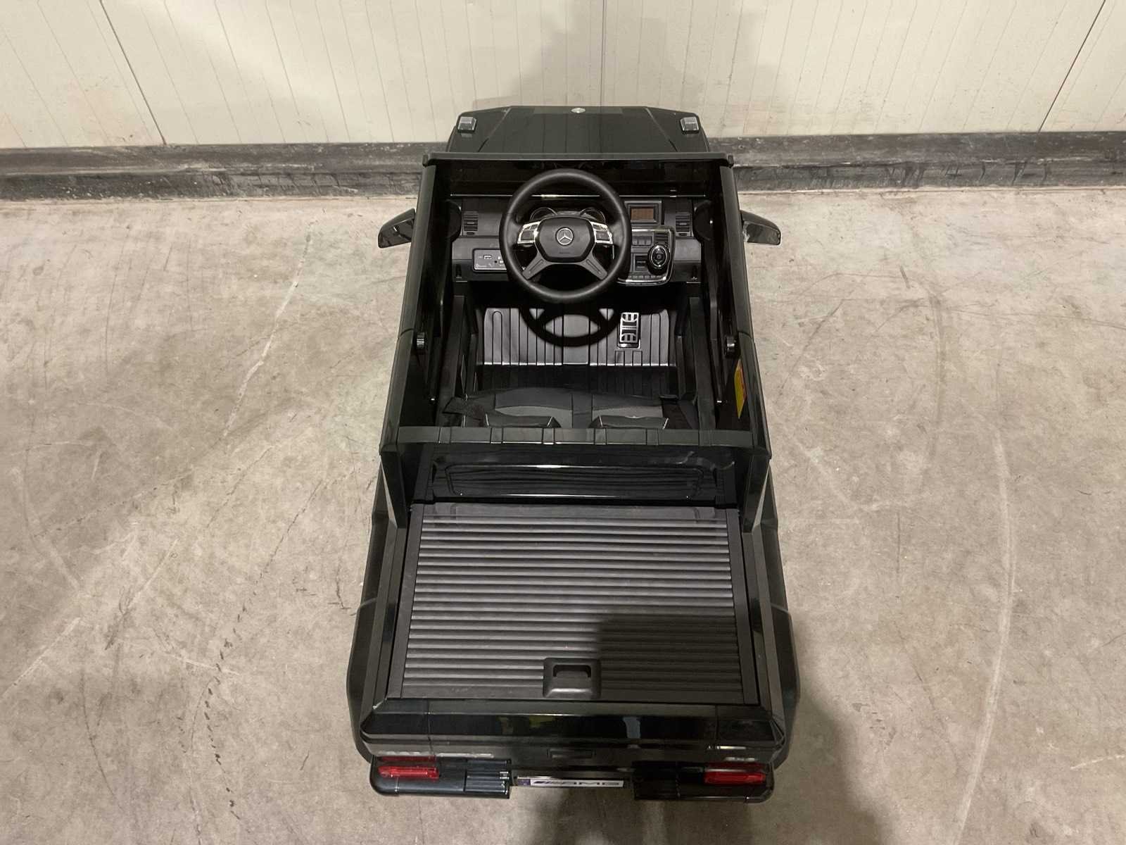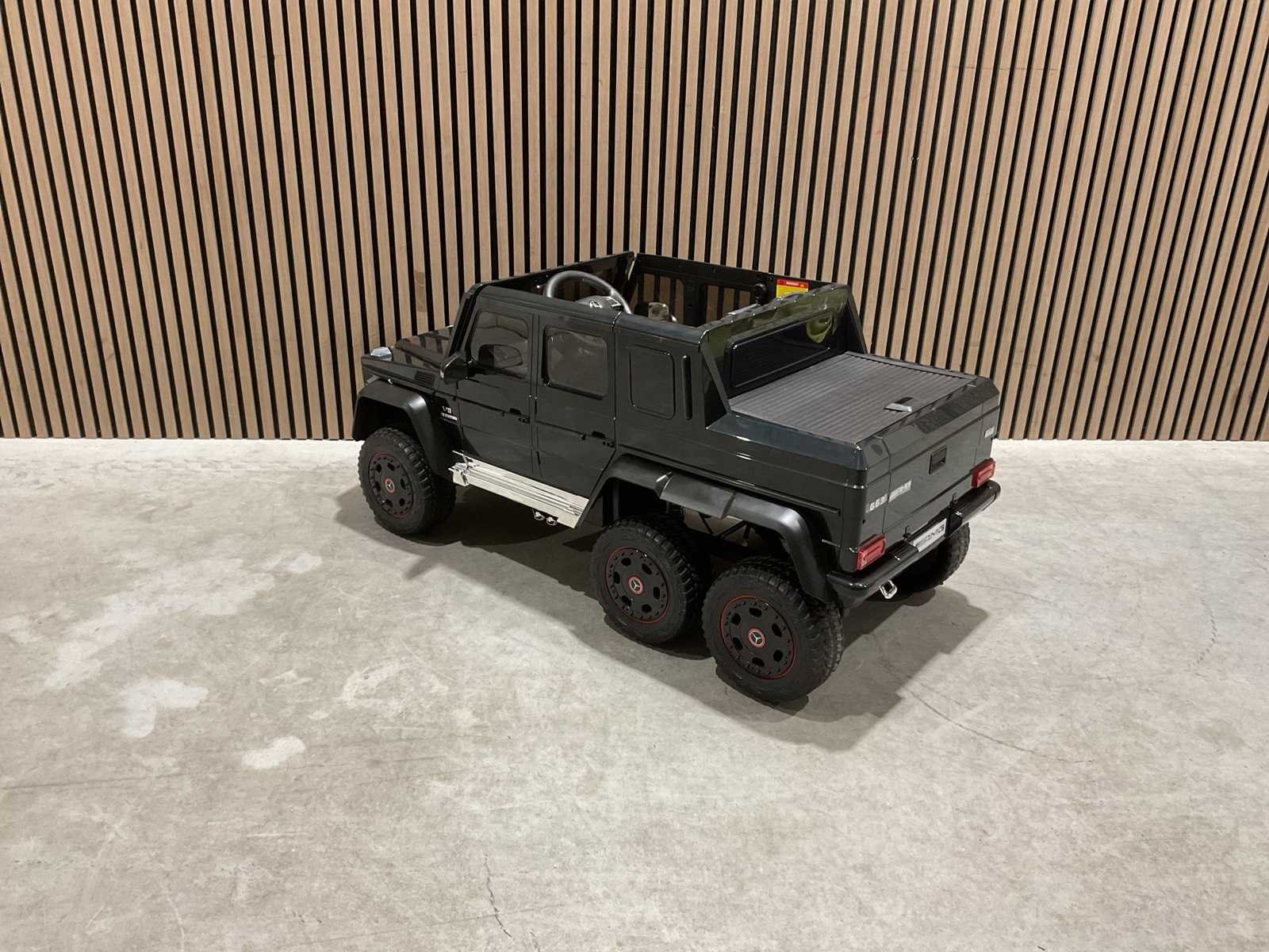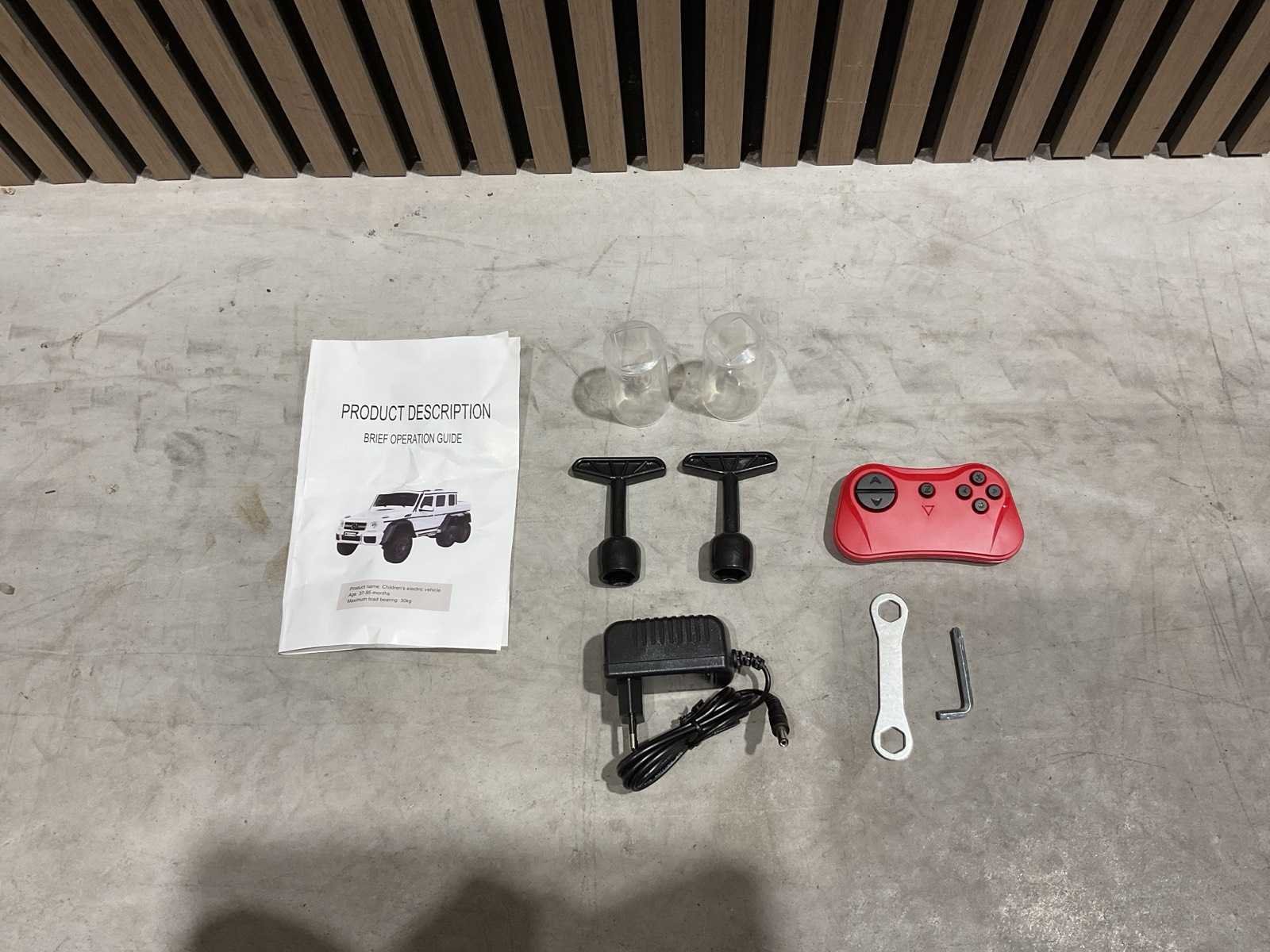 Voorzien van 1 zitplaats; Elektrische aandrijving; Banden: Kunststof banden met grof profiel; Stuur: Functioneel stuur; Design: Realistische G63 AMG 6×6 look; Afstandsbediening; Lichten; Geluidseffecten; Transport gewicht: 36.5 kg; Transport afmetingen: 132x61x49 cm; Ongebruikt in doos Merk: Mercedes Benz Model: DMD-318 Wit Product type: G63 AMG 6x6