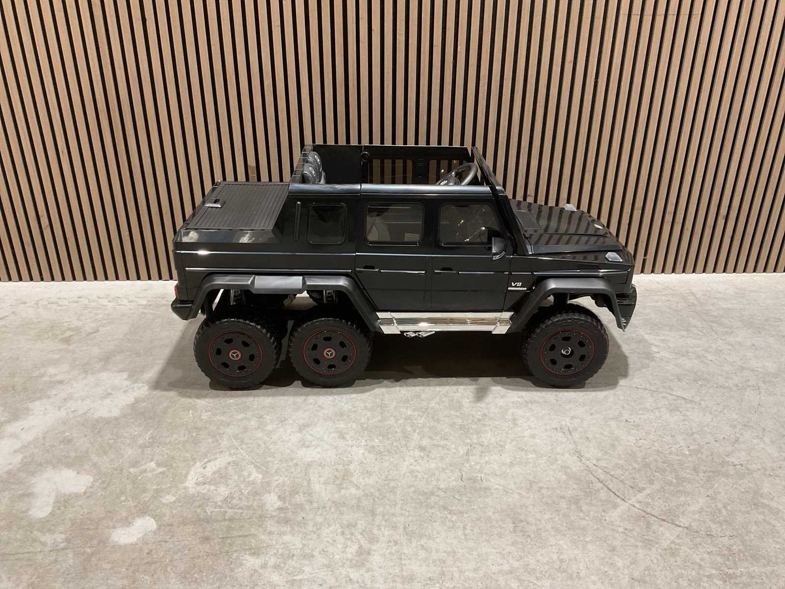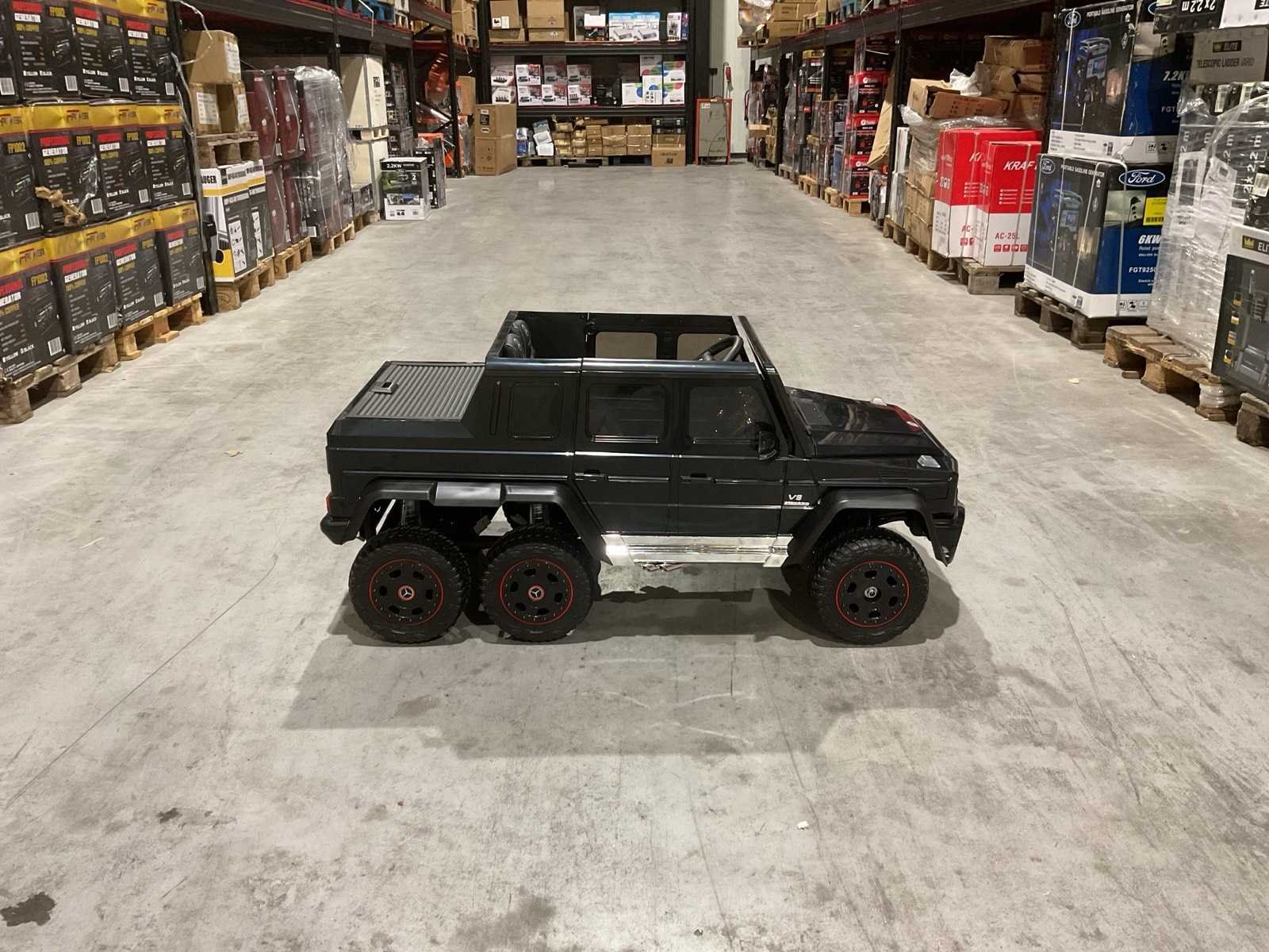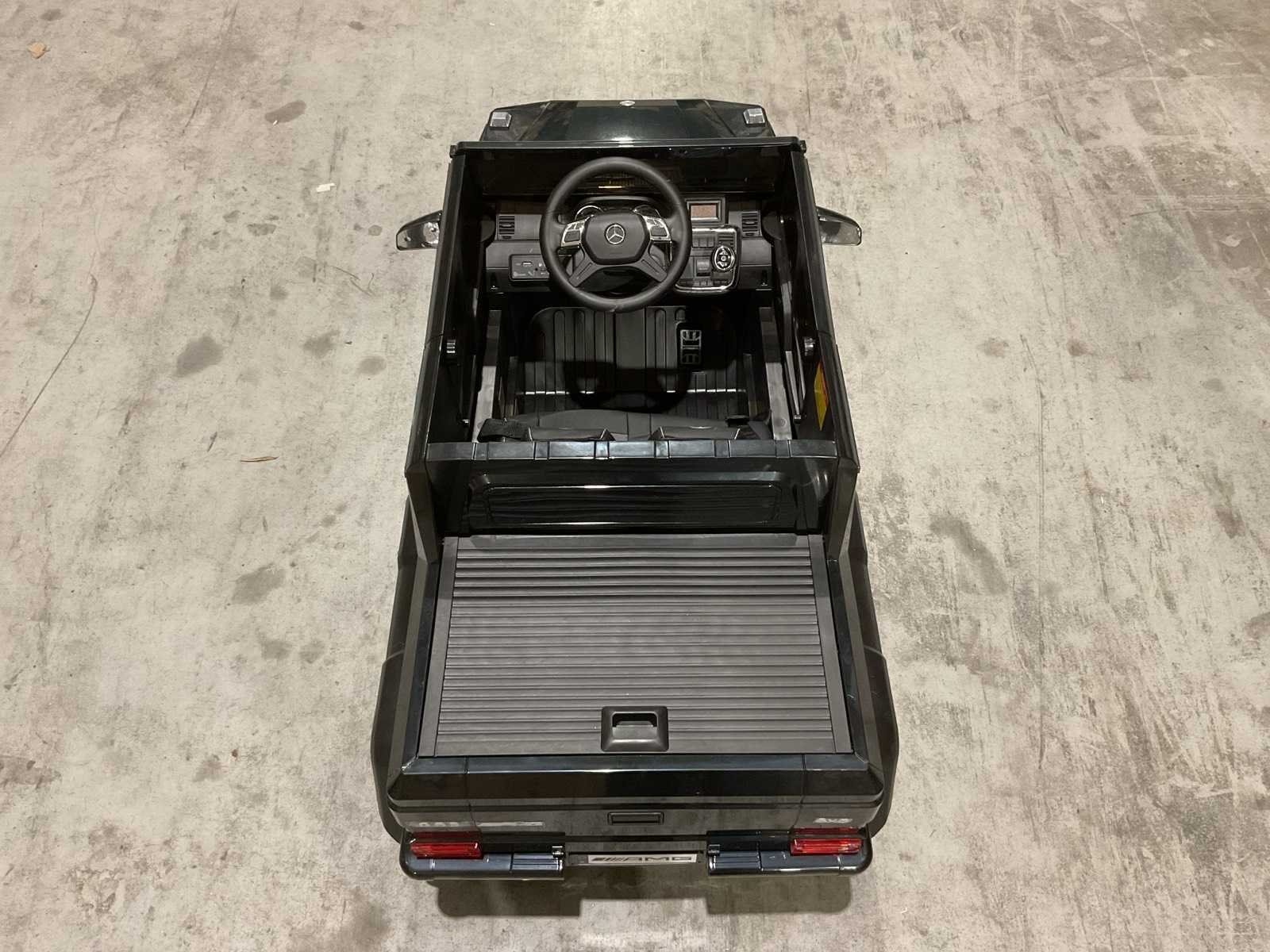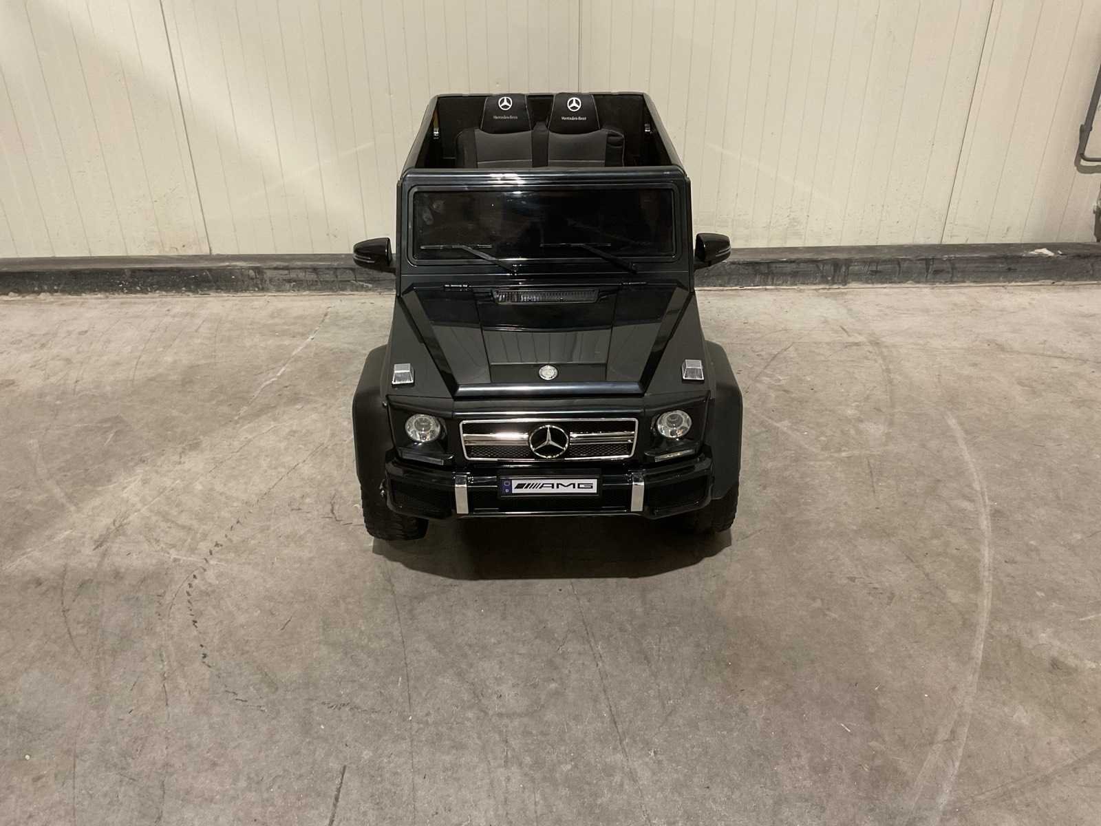 Voorzien van 1 zitplaats; Elektrische aandrijving; Banden: Kunststof banden met grof profiel; Stuur: Functioneel stuur; Design: Realistische G63 AMG 6×6 look; Afstandsbediening; Lichten; Geluidseffecten; Transport gewicht: 36.5 kg; Transport afmetingen: 132x61x49 cm; Ongebruikt in doos Merk: Mercedes Benz Model: DMD-318 Wit Product type: G63 AMG 6x6