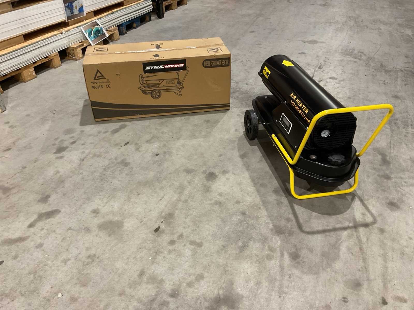 Voorzien van verwarmingsvermogen: 30kw; aansluiting: AC 220–240 V ~ 50 Hz; brandstofverbruik: 2,8 L/uur; Elektrisch verbruik: 230W; Luchtdruk instelling: 0,32 bar; ongebruikt in doos Merk: Stahlworks Type: XDFT-30