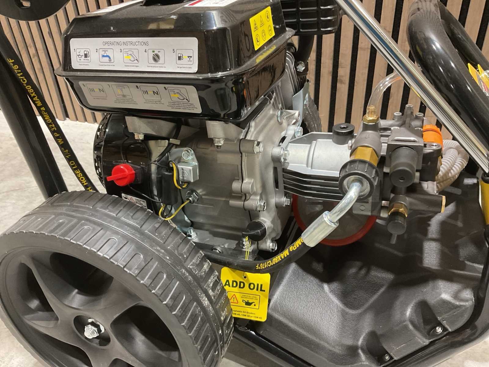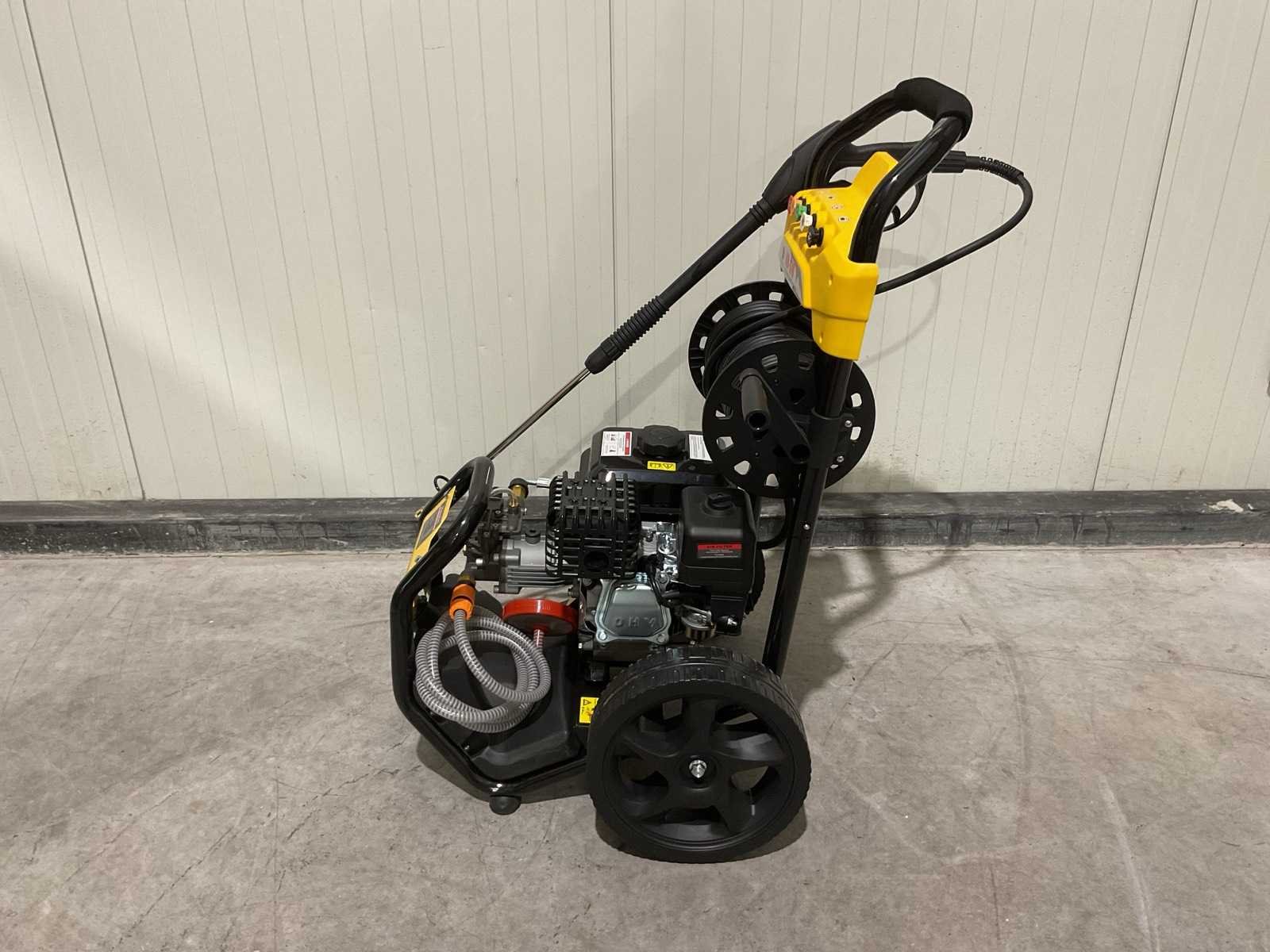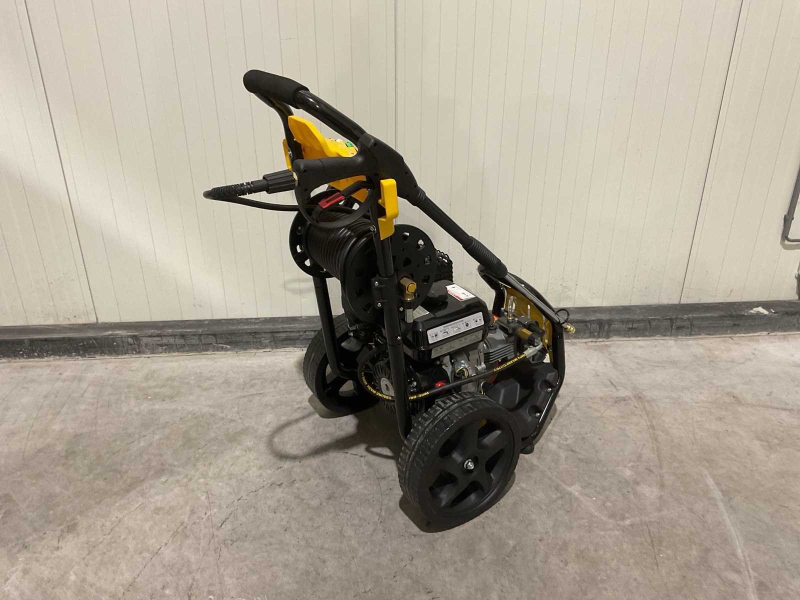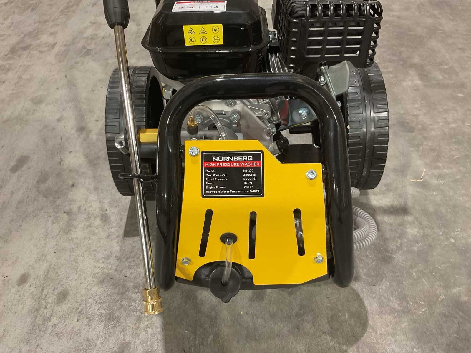 Voorzien van benzine motor; Maximale druk: 3500 PSI; Werkdruk (rated pressure): 3000 PSI; Wateropbrengst: 9 L/min; Motorvermogen: 7.0 HP; Cilinderinhoud: 210 cc; Toegestane watertemperatuur: 0 – 60 °C; heavy duty pomp; robuust stalen frame; Snelle zelf aanzuigende functie; ongebruikt in doos Merk: Nurnberg Type: NB-170 Model: 3500PSI Geel Max. druk: 241bar Gewicht: 37kg
