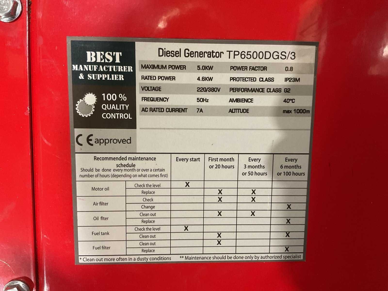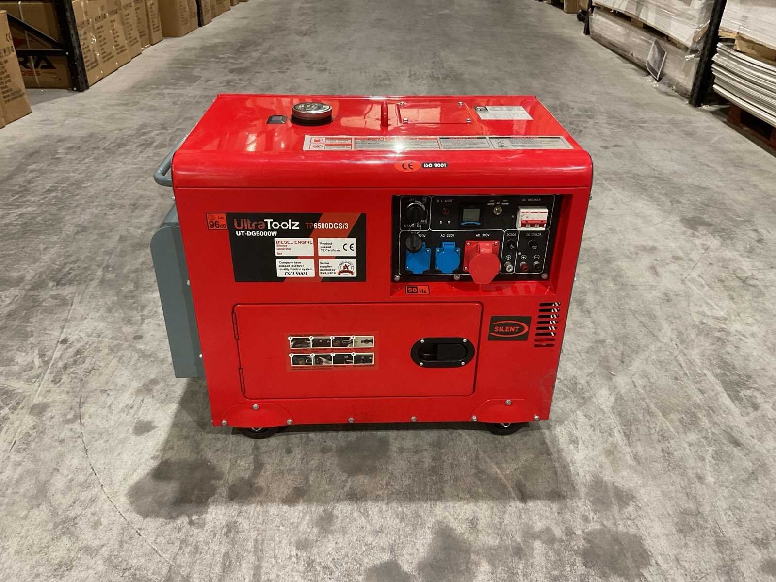 Ongetest; Voorzien van 6,25 KVA; 5 KW diesel motor; 50Hz; 96dB; 1 x 380V aansluiting; 2 x 230V aansluiting; 1x 12V aansluiting; oil alert lampje; AC breaker; (transport afmetingen 95x55x70 cm) Transportschade; retour niet getest Merk: Ultratoolz Type: UT-DG5000W 191508 Diesel: true