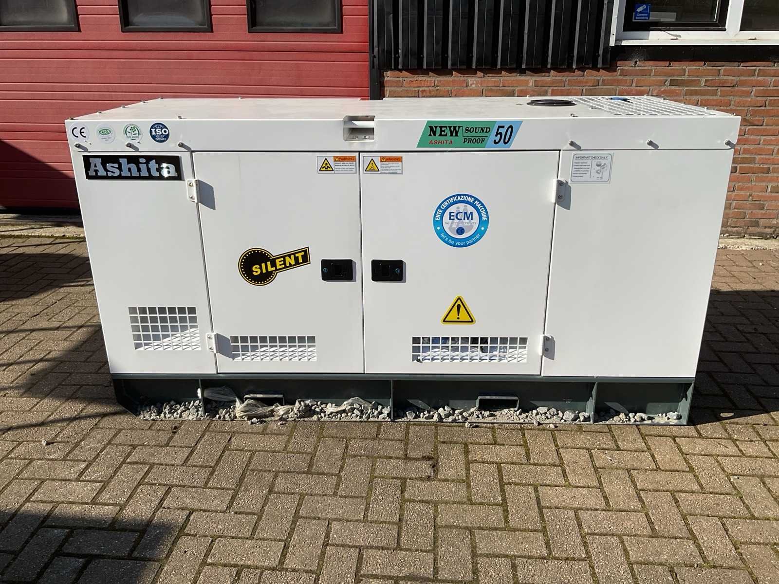 Voorzien van Nominaal vermogen: 50 kVA (±40 kW) Motorvermogen: ±30–32 kW Spanning: 230 / 400 V (1-fase en 3-fase) Frequentie: 50 Hz 2 × 230 V, 1 × 400 V Motor type: ZH4100D dieselmotor Aantal cilinders: 4 cilinders Motortype: 4-takt, watergekoeld Toerental: 1500 rpm Brandstoftank: ±60 liter Brandstof: Diesel Afmetingen (L × B × H): ±2,05 × 0,86 × 1,12 m Gewicht: 900 kg SmartGen digitaal controlepaneel Elektrische start Geluidsdichte canopy (silent type) Forklift pockets voor transport Merk: Ashita Power Type: AG3-50 Wit