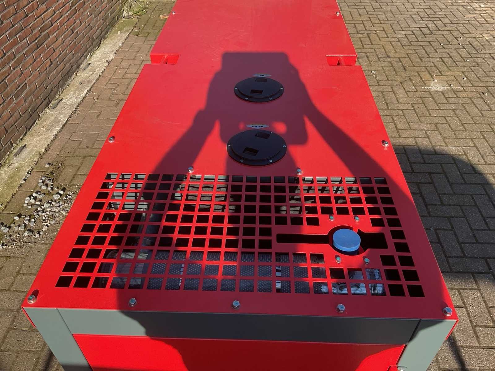 Voorzien van Nominaal vermogen: 30 kVA / ±24 kW Standby vermogen: 30 kVA / ±24 kW Frequentie: 50 Hz Spanning: 400 V (3-fase) Brandstof: Diesel Motorvermogen: ±24 kW (ca. 32–33 pk) Geluidsniveau: ±78 dB(A) met geluidskap (silent canopy) SmartGen digitaal controlepaneel voor monitoring en beveiliging Geluidsdichte behuizing (super silent) Elektrische start Forklift pockets voor transport Merk: Ashita Power Type: AG3-30 Rood